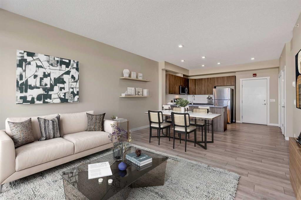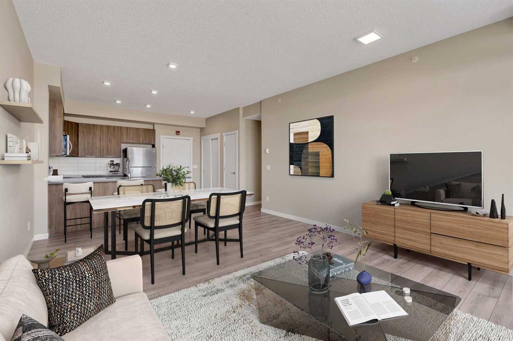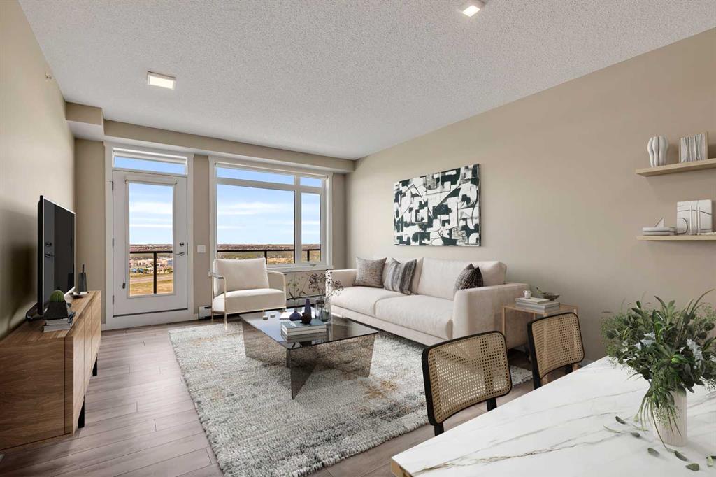 Welcome to Diseno by Landmark Homes in Sherwood! This spacious 2 bedroom, 2 bathroom unit on the TOP FLOOR features a open floor plan(that can fit a full sized dining table), large bright windows, 9 foot ceilings, and a east facing deck with UNOBSTRUCTED EAST VIEWS of the valley and a natural gas line! Finished with designer cabinets, sleek wide plank laminate flooring, quartz countertops, stainless steel appliances - it's everything you need to enjoy the maintenance free condo lifestyle. Home comes with 2 TITLED PARKING STALLS (1 underground and 1 surface stall). Also enjoy relaxing walks in the beautiful park and pond right beside the building. Close proximity to lots of restaurants, big chains stores like Walmart, T&T, and Costco, and quick and easy access to Stoney Trail. Book a showing today!