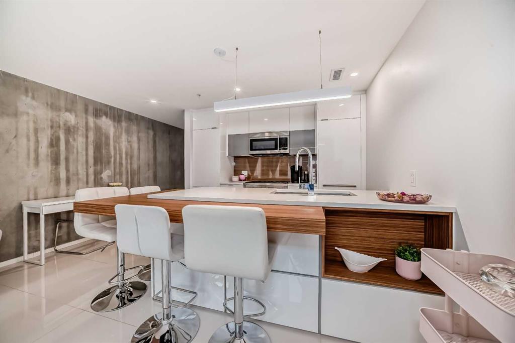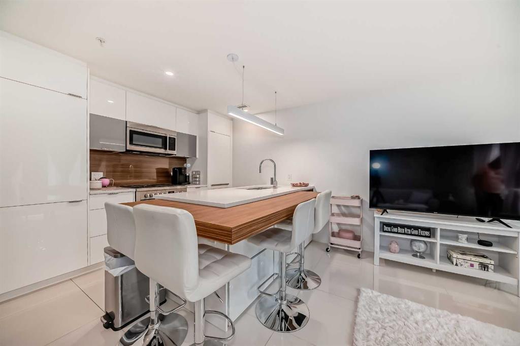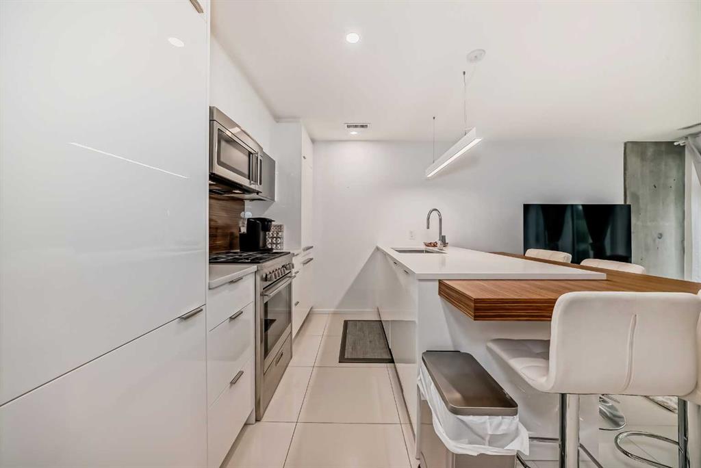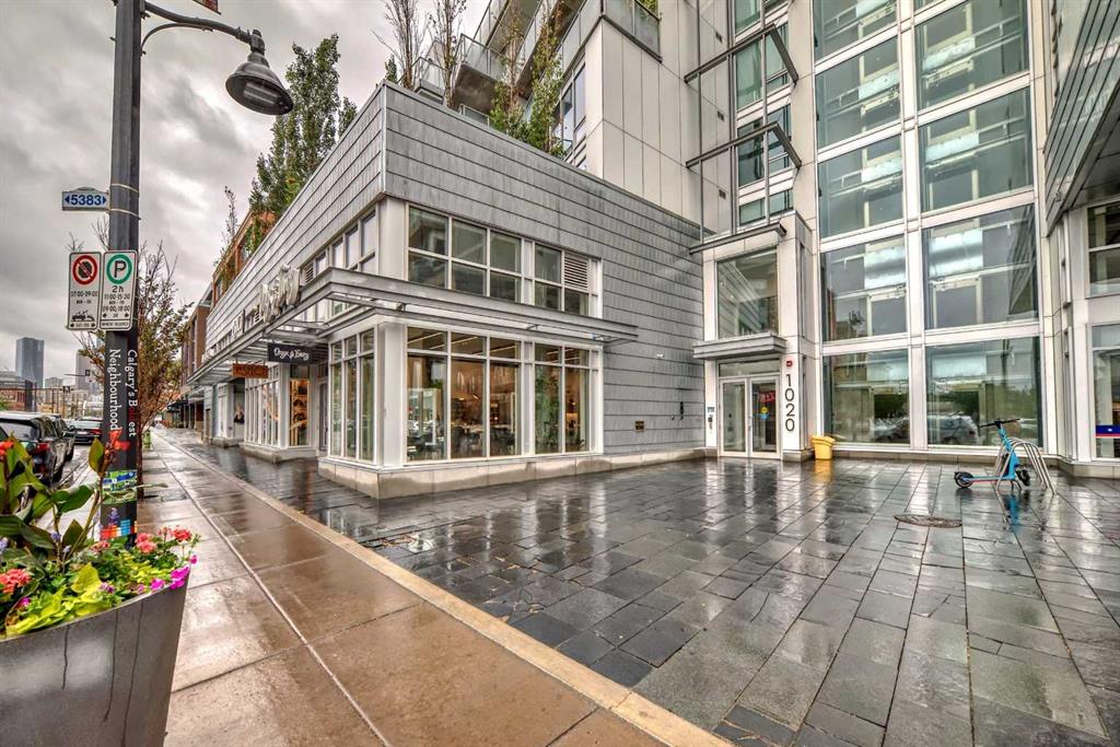 Nestled in the heart of historic Inglewood, this modern 1 bed, 1 bath condo offers a delightful blend of convenience and charm. With its floor to ceiling windows showcasing gorgeous views, you'll enjoy the easy access to all the amenities Inglewood has to offer. The open floorplan seamlessly connects the living area to the ultra-modern kitchen, complete with a stylish island/breakfast bar, quartz countertops and an array of sleek white cabinets. The appliance package features a stainless steel gas stove and microwave plus an integrated fridge and dishwasher that blend effortlessly with the cabinetry. Tucked behind a space saving barn door, the bedroom basks in an abundance of natural light, creating a serene oasis. The condo also offers the convenience of in-suite laundry, ensuring everyday chores are a breeze. For added peace of mind, there is one designated secured underground parking stall (#138) plus an assigned storage space (S55) and bike storage. As a resident, you'll have access to a large patio space with BBQ hookups, perfect for entertaining friends and family. You'll appreciate the premium location, with shops, the Crossroads Market, restaurants and popular music venues like The Blues Can and Ironwood just steps away. Enjoy the close proximity to nature with the Bow River, Calgary Zoo, St. George's Island and the Inglewood Bird Sanctuary all within walking distance plus schools, shopping, public transit and the DT core all within minutes of this gorgeous condo.