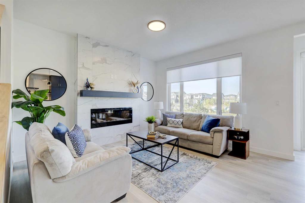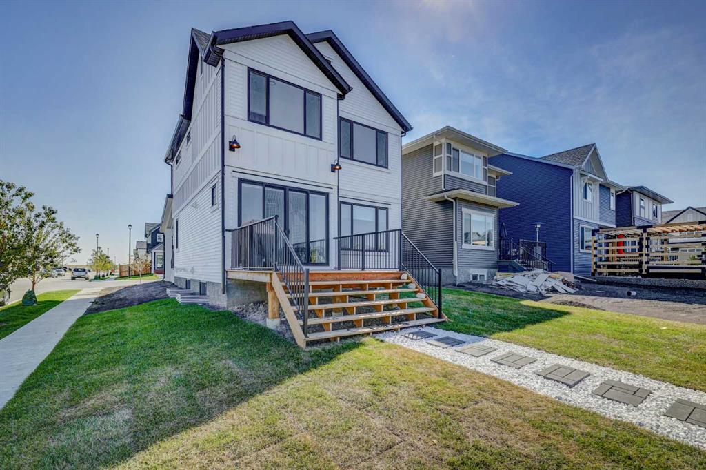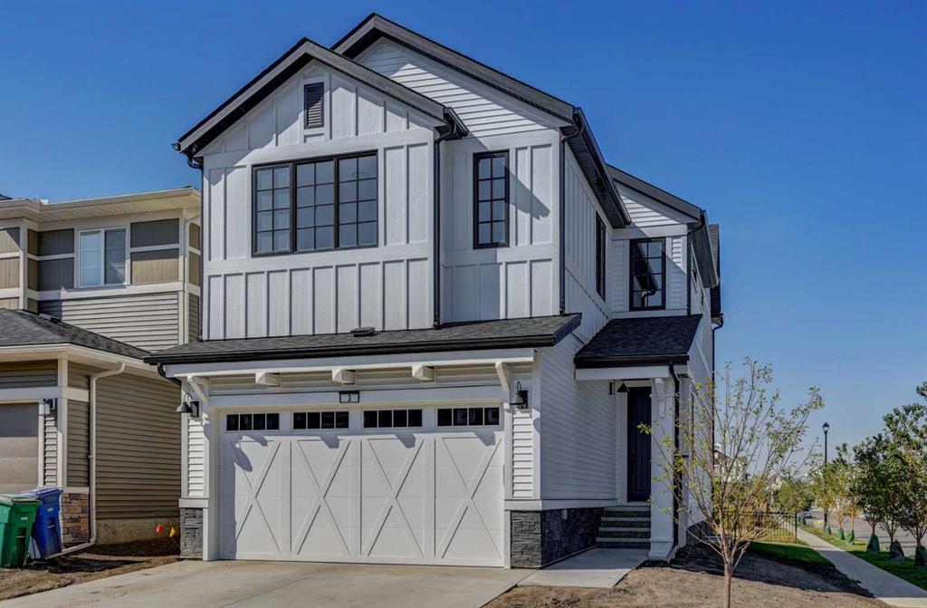 PRICE REDUCED! Welcome to this 2023 custom built home by Castellano in the vibrant community of Lanark, Airdrie. This remarkable home combines sophisticated design with exceptional functionality, offering a range of $60,000 of upgraded features that make it truly stand out. From the moment you arrive, you'll notice the impressive stature of the farm house design plus an oversized garage, measuring 17.7x26.9 feet, complete with added lighting for convenience. The grandeur of 9-foot ceilings on both the main and upper floors enhances the spacious feel of the home. The custom floor plan is thoughtfully designed to cater to modern living, featuring a striking waterfall island in the kitchen with an oversized 9'x4' island, complemented by custom navy blue kitchen cabinets with gold accents and high-end appliances, including a gas range. The kitchen is not only functional but also stylish, with an upgraded farm house sink and a large pantry for ample storage. The home’s aesthetic appeal is further elevated by elegant black trim windows, vinyl flooring on main and second floor, and upgraded lighting fixtures throughout. The main living area is highlighted by a beautifully upgraded fireplace, creating a cozy focal point. Sliding open the 8'x10' middle opening patio doors, you’ll find yourself with a private entry to a serene park, perfect for outdoor relaxation. The upper floor features luxurious touches such as a large bonus room, walk-in closets in the bedrooms and upgraded bathrooms. Enjoy the comfort of tiled showers and a larger shower in the main bath, along with upgraded shower faucets and undermount sinks for a sleek look. The Jack-and-Jill bathroom provides convenience for families, while the hidden room in the master bedroom offers a unique space for a nursery, home office or studio for your next you tube channel. The basement is designed for both comfort and versatility, featuring a separate entry from the mudroom, an extra window for natural light, and plumbed for a wet bar and bathroom is ideal for future development. Living in Lanark means enjoying a vibrant community with a wealth of amenities. This family-friendly neighborhood boasts well-maintained parks, walking trails, and a strong sense of community. Residents benefit from proximity to excellent schools, shopping centers, and recreational facilities, making it a perfect place for families and individuals alike. This home in Lanark offers not only luxurious living but also the convenience of a dynamic and welcoming community. Don’t miss your chance to experience the best of both worlds—schedule a viewing today!