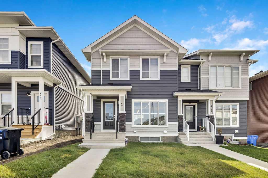 Investor alert!!! Value for money is what describes this well maintained 4 bedrooms and 3.5 bathrooms duplex in the amenity rich and family friendly community of Carrington. With a separate entrance to the fully finished basement, this property is ready to support a large family or act as a mortgage helper to the owner with only a few items remaining to make it a legal suite.. The main level offers an open concept living room/kitchen/dining room layout ensuring a smooth flow within the house. With very large street facing windows, you will have lots of natural light flooding your house. The gourmet kitchen as a quartz island with white cabinetry, lots of storage and stainless steel appliances. There is another large south facing window at the dining area to allow you bask in the evening sun from the comfort of your home. The upper level features a large master bedroom with walk in closets and a 4 piece ensuite bathroom. Two additional bedrooms, another 4 piece bathroom and the laundry room completes this level. The basement which has its own separate entrance is fully finished with a bedroom and a 4 piece bathroom and can be easily converted to a legal suite. There is a parking pad at the ack of the house for your vehicles. With easy access to both Stoney and Deerfoot Trails, schools and shopping, this property is strategically located as an excellent investment property. Book your showing now while it is still active.