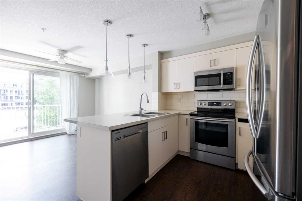 Welcome to this beautiful condo in Auburn Walk, nestled in the heart of the stunning LAKE community of Auburn Bay! This charming 2-bedroom, 1-bathroom condo offers the perfect combination of comfort, modern upgrades, and lakeside living. With 530 square feet of carefully designed space, this home exudes warmth and style with vinyl flooring, plush new carpet, new lighting in kitchen in living room, and freshly painted walls, making it truly move-in ready. Step into a bright and open-concept living area with large windows that invite natural light to fill the room, while the updated finishes create a cozy yet modern atmosphere. The kitchen boasts sleek cabinetry, stainless steel appliances, and a convenient breakfast bar, perfect for casual dining. One of the highlights of this unit is the spacious balcony, providing the perfect spot to unwind with a morning coffee or entertain guests in the evening. For those who love outdoor grilling, the gas hookup ensures your BBQs are a breeze! The primary bedroom comfortably fits a king-sized bed and offers ample closet space, while the second bedroom is equally versatile, ideal for a guest room or home office. The shared bathroom features modern fixtures and a clean, contemporary design. Additional perks include in-suite laundry, an assigned storage locker, and a heated underground parking stall, ensuring convenience and comfort year-round. Plus, being part of the Auburn Bay community means you have exclusive access to the lake, parks, and pathways—enjoy all the activities and beauty this serene neighborhood has to offer. This beautiful condo combines convenience, comfort, and the charm of lake community living. Don't miss out—book your private viewing today!