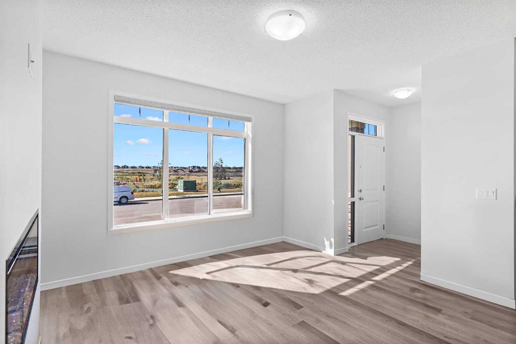 Welcome to 300 Dawson Drive, an elegant Morrison home build! Discover modern elegance and comfort in this exquisite 3-bedroom, 2.5-bathroom home located in the vibrant community of Dawson's Landing in Chestermere. Built in 2023, this pristine residence offers a perfect blend of contemporary design and practical features, complemented by Alberta’s New Home Warranty. Step into a welcoming open floor plan where the spacious living room, kitchen, and dining areas seamlessly connect. The abundance of windows allows natural light to flood the space, enhancing the airy and bright atmosphere. The main floor is elegantly appointed with Luxury Vinyl Plank flooring, providing both durability and a refined look. Carpeted stairs and a plush second level ensure added comfort, while stylish tile flooring graces the bathrooms. The upgraded gourmet kitchen is a chef’s delight, featuring: Stainless Steel Appliances: Including a full-size fridge, built-in microwave, and a modern hood fan. Full Height Backsplash & Taller Cabinets: Enhancing both function and style with ample storage and a sleek appearance. Upgraded Sink & Separate Pantry: Offering convenience and practicality. The living room showcases a striking 50-inch electric fireplace with an upgraded feature wall, creating a cozy focal point perfect for relaxation and gatherings. The upgraded deck extends your living space outdoors, featuring elegant glass railings that ensures privacy. A convenient gas line is ready for your BBQ, making outdoor entertaining effortless. Enjoy picturesque views and peaceful surroundings as this home faces a beautifully maintained pond, complemented by lush greenery and accessible bike/walk pathways. Dawson’s Landing offers a harmonious blend of natural beauty and modern amenities, enhancing your quality of life. This exceptional home is designed to meet the highest standards of modern living and is ready for you to move in and make it your own. Schedule your private showing today to experience the elegance and comfort of this remarkable property.
