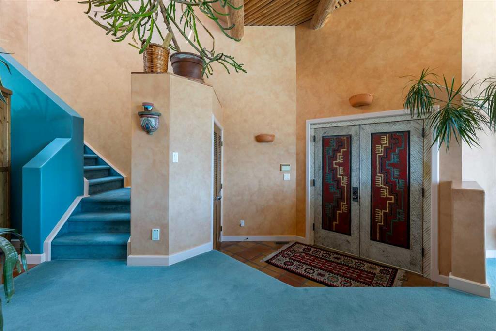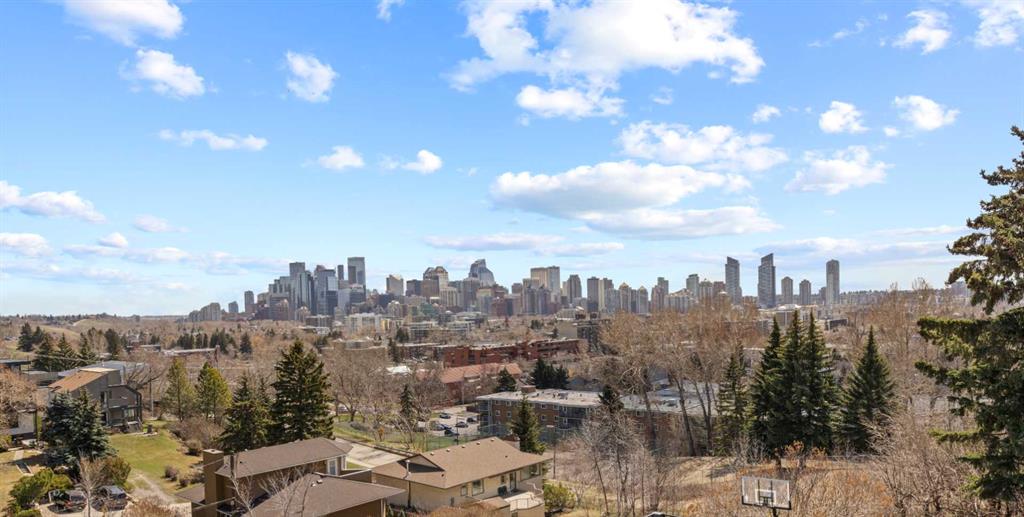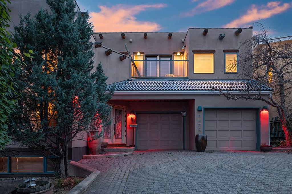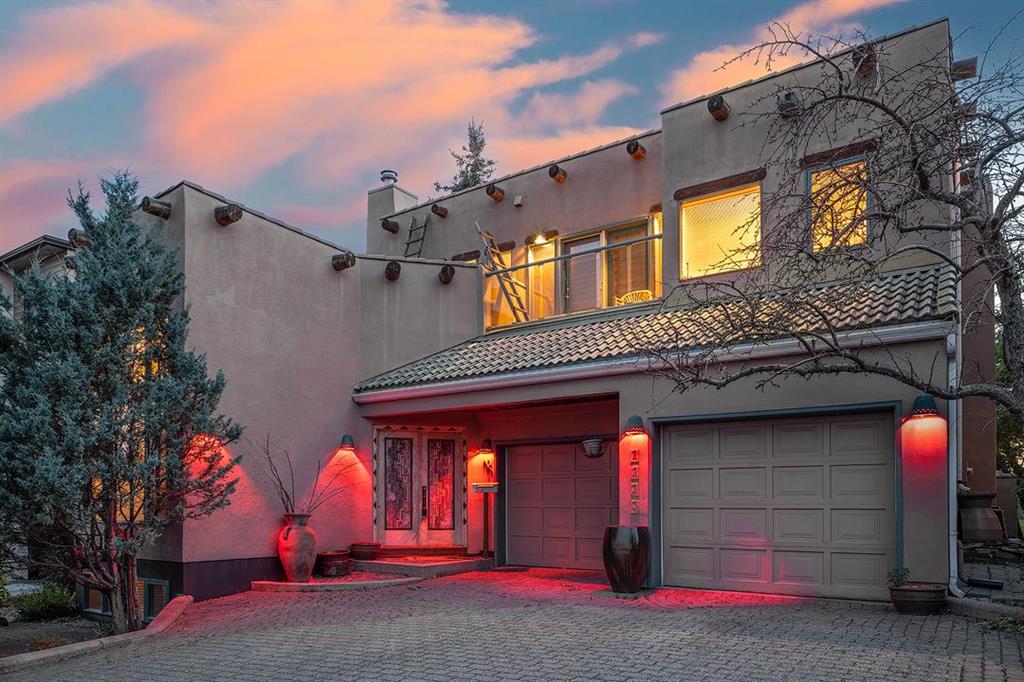 HOLY VIEWS!!!! This home offers unobstructed downtown views out the living room and primary bedroom windows, it is truly a striking scene of modern skyscrapers and can be thoroughly enjoyed from different vantage points! Meanwhile, at the back of the home, you can enjoy serene valley and mountain views, providing a beautiful contrast to the urban landscape. It's a perfect blend of city sophistication and natural beauty, offering captivating vistas from both ends of the property. This distinctive home, designed by Seville homes, stands out from the crowd in Calgary, evoking the charm of Santa Fe architecture and transporting you to the sun-drenched landscapes of New Mexico from the moment you step inside. Upon entry, you're greeted by soaring natural skinned log ceilings and expansive windows offering panoramic views of Calgary's skyline. Situated on a ridge crest with parks in both the front and the back, this property occupies a truly unique location. Inside, the house exudes an enchanting blend of authentic colours and materials. Designed with entertaining in mind, the spacious layout includes a generous living room, dining area, breakfast nook, and a high-end kitchen. A fully equipped wet bar adds to the appeal for hosting gatherings. Upstairs, natural light floods in through a magnificent skylight and ample windows, creating an inviting atmosphere. The primary bedroom serves as a personal sanctuary, complete with a private balcony offering stunning downtown views. The accompanying five-piece ensuite and walk-in closet provide both luxury and functionality. Two additional bedrooms share a well-appointed five-piece bathroom with a double vanity, offering picturesque mountain vistas. Downstairs, a sizable living area awaits, offering versatility for customization. Whether you envision an entertainment space, home gym, or both, there's ample room to realize your vision. Outside, the backyard provides an ideal setting for summer barbecues and cozy evenings gathered around the wood-burning fireplace. Conveniently located just minutes from Kensington and downtown, this property offers easy access to all the amenities Calgary has to offer. You could transform this home into a wonderful modern Sante Fe masterpiece with some white paint and new flooring! Fronting and backing an environmental reserve, views like this are an incredibly rare find! Don't miss out!