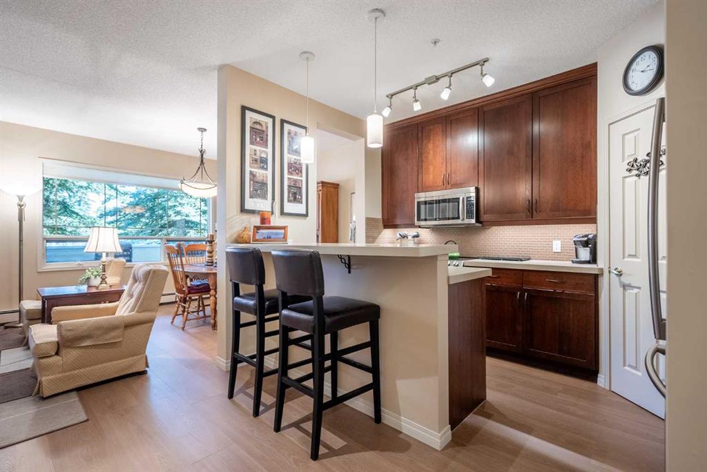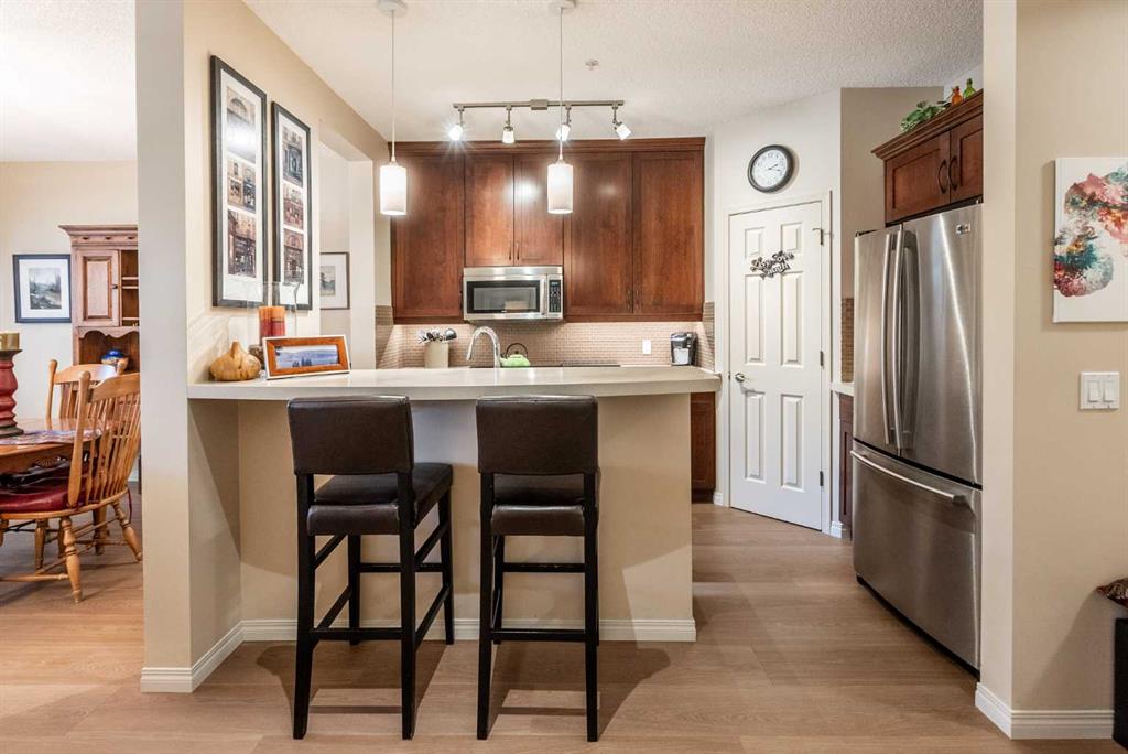 Public Remarks Discover the perfect blend of urban convenience and a peaceful retreat in this stunning condo at Courtyards West Park, Palliser. Nestled within beautifully landscaped grounds, this immaculate home exudes elegance and comfort. Upon entry you are greeted by a generous entrance boasting 9 ft ceilings, new laminate flooring and baseboards throughout the main living area. The open concept floor plan is great for family gatherings and entertaining making furniture placement a breeze. The dream kitchen features composite granite countertops, upgraded stainless steel appliances, stunning rich cabinetry, corner pantry and plenty of cupboard and counter space. The raised eating bar adds to the functionality lending additional counter space and eating environment. The formal dining area seamlessly transitions from the kitchen and can easily be expanded to accommodate larger gatherings. Move into the generous living room and relax by the the gas fireplace. Down a short hallway to enjoy privacy is the main bath and bedrooms. The large primary suite is a true retreat featuring a massive walk-in closet and a spa-like 4-piece ensuite with a deep soaker tub and separate shower. The second bedroom is a perfect size room for guests, office or T.V room. This home has a separate laundry room providing additional storage to the storage unit in the parkade also included with this unit. Located just steps from Glenmore Reservoir and close to Glenmore Landing shopping, the location is unbeatable. The complex offers fantastic amenities, including a social great room with a full kitchen for gatherings, a quiet courtyard for summer evenings, a sunroom, and a guest suite. With secure front door access, heated underground titled parking, a storage cage, bike storage, and an additional residence storage room for items like winter tires, this well-managed building has it all. Plus, there’s ample parking for guests, including street parking. Experience tranquility that feels miles away from the city's hustle and bustle. This condo checks all the boxes and must be seen to be fully appreciated. Don’t miss this exceptional opportunity—make it yours today!