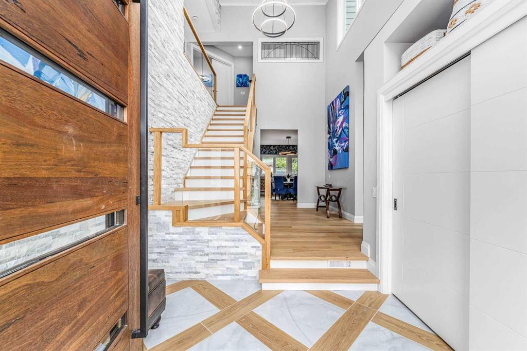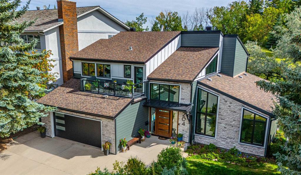 4 bedrooms, 4 full Bathrooms and 4,157 square feet on 3 floors and backing and siding onto a park. Modern, elegant, and luxurious, it was designed so that every floor has a wow. Enter through an oversized pivot door (4' x 8' high) into the foyer with a vaulted ceiling rising to 20'7 at the highest point. On your right is the living room - another vaulted ceiling rising to 12'7 high and lit with several pot lights on a dimmer. A 3-sided fireplace provides ambience and warmth. How about a main floor office? There is one off the living room with glass doors for privacy. This bright room, overlooking the park, could also be a private dining room. Forward to a large dining/kitchen. 9' ceilings and full-sized granite island with space to seat up to five people. It even has a wine fridge! The home's custom cabinetry includes plenty of cupboards and 18 drawers in the kitchen/dining area, plus another 8 in the hidden pantry. Don't miss the hidden walk-in pantry with its full-height cupboards, granite counters and oversized fridge. In the dining section, there's a 16' custom hutch with a wine rack. Let's not forget the spacious mudroom with benches on two sides and a closet in the middle. You will love the heated tile that stretches through to the main-floor bathroom. We've added a full-sized shower—for your pet or for you to use when you come in from the gardens. Upstairs features a generous-sized primary suite. I should also mention the park and garden views from its windows and balcony. An ensuite features a walk-in closet to the right and to the left, soaker tub, large shower and private water closet. The ensuite, as well as the 2nd full bathroom, have heated flooring and double sinks. There are two additional bedrooms and a laundry room with a door leading to a front balcony. From here, you see a beautiful mountain view! The basement features a wine room (formerly a cold room), an amazing movie room with an 87" TV and sound system (included), games room with wet bar, fridge, and dishwasher, spacious bedroom with a semi-private 3-piece bathroom and large storage room. Back upstairs, step outside the kitchen onto a large deck. We've added a gas hookup for barbequing. Around the side is a shed built to resemble a pool house - sorry, no pool! This insulated building has large windows, modern lighting and a skylight. There's just so much more. The whole exterior has been redone with Hardi-board as well as cultured stone on the front. There are also new windows in most of the home - triple pane on the front. The home has several mature trees and gardens and an in-ground sprinkler system. Located in an upscale, mature area, several top-rated schools, Southland Leisure Centre, South Glenmore Park, Heritage Park, shopping centres, and all kinds of services are nearby. There is also easy access to Calgary's new ring road and the Southwest BRT!
