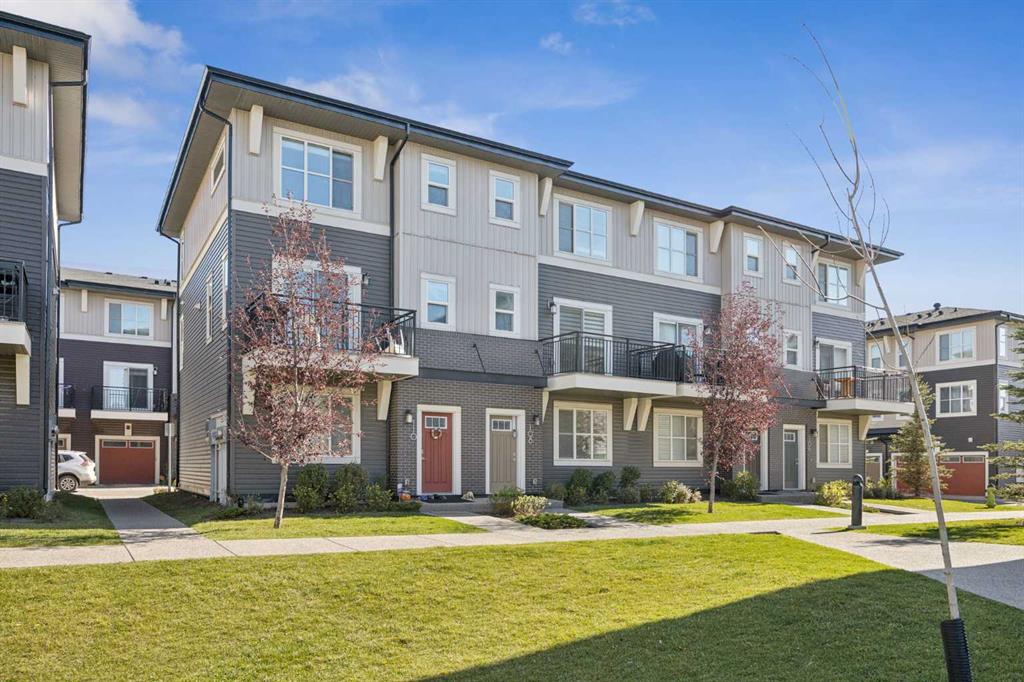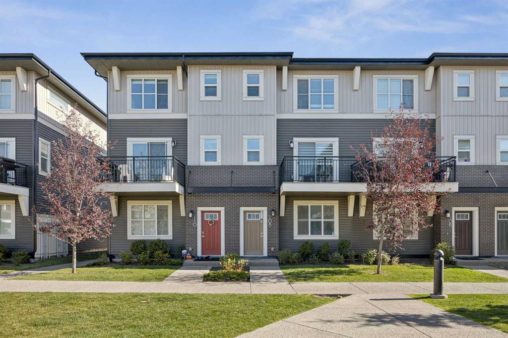 This exquisitely designed townhome boasts two elegant master suites and an additional den/bedroom on the main level, complemented by 2.5 modern bathrooms. Upon entering, you’ll be instantly captivated by the open-concept layout, where sleek laminate flooring flows effortlessly across all three levels. The main level features a contemporary kitchen, equipped with stainless-steel appliances, a chic island, and stunning quartz countertops, making it a chef's paradise. The adjacent living and dining areas create an inviting atmosphere, perfect for entertaining family and friends. Step out onto the west-facing balcony to enjoy peaceful moments while taking in breathtaking views of the beautifully landscaped courtyard and lush green space. Convenience is paramount with a double attached garage, providing ample storage for all your belongings and ensuring ease of access. Located in the vibrant community of Cornerstone, this townhome is just minutes away from schools, shopping centers, grocery stores, and a diverse selection of restaurants. Commuting is a breeze with easy access to the Saddletowne C-train and public transit options. Don’t miss the opportunity to make this stunning townhome your own! Schedule a viewing today and experience the perfect blend of modern living and community charm. The unit has been professionally cleaned, with the carpets of the stairs freshly washed and the walls receiving meticulous paint touch-ups, ensuring a pristine move-in ready home.