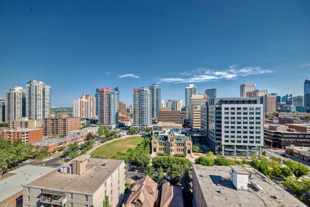 Welcome to this two-bedroom condo in Dorchester! This is downtown living at its finest, just steps awayfrom 17th Avenue, the downtown core, the river pathways, transit, and countless amenities, including grocery stores, restaurants, coffee shops, and retail. This spacious unit features a galley kitchen. The dining room and living room are open-concept, ideal for entertaining. Step out through your patio doors onto a large north-facing balcony and enjoy the stunning views from the 16th floor. The sizable primary bedroom features ample space for a king-size bed. The second bedroom is also great for guests or a home office. The building offers many great amenities, including a common area laundry room, sauna, party room, gym, indoor squash court, outdoor space, pavilion, and community garden. This great unit also comes with a titled underground parking stall.