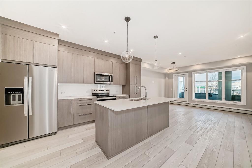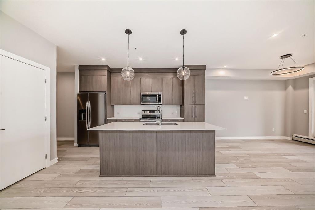 Savanna II Condos by TRUMAN—where elegance seamlessly blends with luxury living. This splendid new home features two bedrooms, two bathrooms, and comes complete with a titled underground parking space. Standout features include premium wide plank flooring, an upscale designer lighting package, and a gourmet kitchen tailored for a chef, outfitted with high-end stainless steel appliances and sleek quartz countertops. The master suite offers a walk-through closet leading to a sumptuous four-piece ensuite bathroom. The additional bedroom is generously sized with an ample walk-in closet. This unit also boasts convenient in-suite laundry facilities, stylish window treatments, and a charming balcony accessible from the living room. Exclusive amenities available to residents include an Owner's Lounge, state-of-the-art fitness center, and a luxury pet spa. Book your viewing today and discover the epitome of sophisticated living at Savanna II Condos!