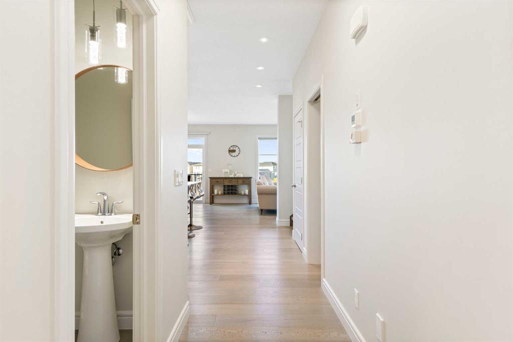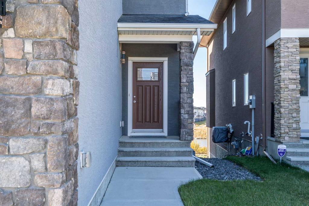 Welcome to this contemporary custom built 3-storey home with in Carrington. Backing onto pond, this epitome of refined living enjoys 5 bedrooms, 4.5 bath, and a third level loft. Showcased by engineering hardwood and feature walls, you will embrace the pond view in its cozy great room with fireplace. For the gourmet in the family, behold the fully-loaded kitchen with its full-heights cabinet, granite countertop, gas range and stainless-steel appliances. The main floor also boasts an office and a den. On second level, you will discover the master suite with an opulent 5pcs ensuite with glass stand up shower and oversized soaker tub. The second suite is perfect for someone needing their own 4pc ensuite. The 2 other bedrooms share a 5 pcs bath which is connected to the laundry room with plenty of sunlight. The family room with the unobstructed pond view is where you can relax, play and enjoy baby tummy time. Heading up to the third level is where the dreams come true, you will find another bedroom with 4pc bath and the loft for you to read, play, observe the stars or use it as a man cave. The walkout level is unfinished waiting for your magic touch. Backyard is landscaped for you to enjoy the sun and has a private gate leading to the city pathway for you and your flurry buddy to enjoy the walk. The 2 A/C ensure you keep cool in the summer. Close proximity to shopping centres and stoney trail.