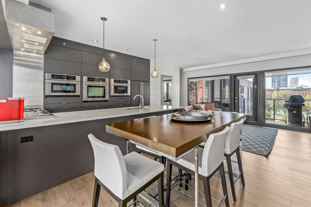 Discover the epitome of urban sophistication in this contemporary, luxurious, and impeccably designed urban residence. Boasting two stunning vantage points, its near floor-to-ceiling windows showcase breathtaking views: southward to the Bow River and Downtown, and northward over Bridgeland & Crescent Heights. This customized unit exceeds expectations with over $75,000 in upgrades, including a meticulously crafted kitchen featuring Wolf, Fisher and Paykel, and Jenn Air appliances, a master ensuite with an expansive glass steam shower, custom paint throughout, and an Oligo track lighting system highlighting artworks. Enjoy hardwood floors with radiant in-floor heat, 9 ft ceilings, and a spacious balcony equipped with a natural gas hookup. Situated within a 10-minute stroll of downtown, post office, drugstore, convenience store, and numerous dining and entertainment options, this residence offers an unmatched lifestyle. For those seeking the pinnacle of Calgary luxury condominium living, look no further—this is unparalleled value at its finest!
