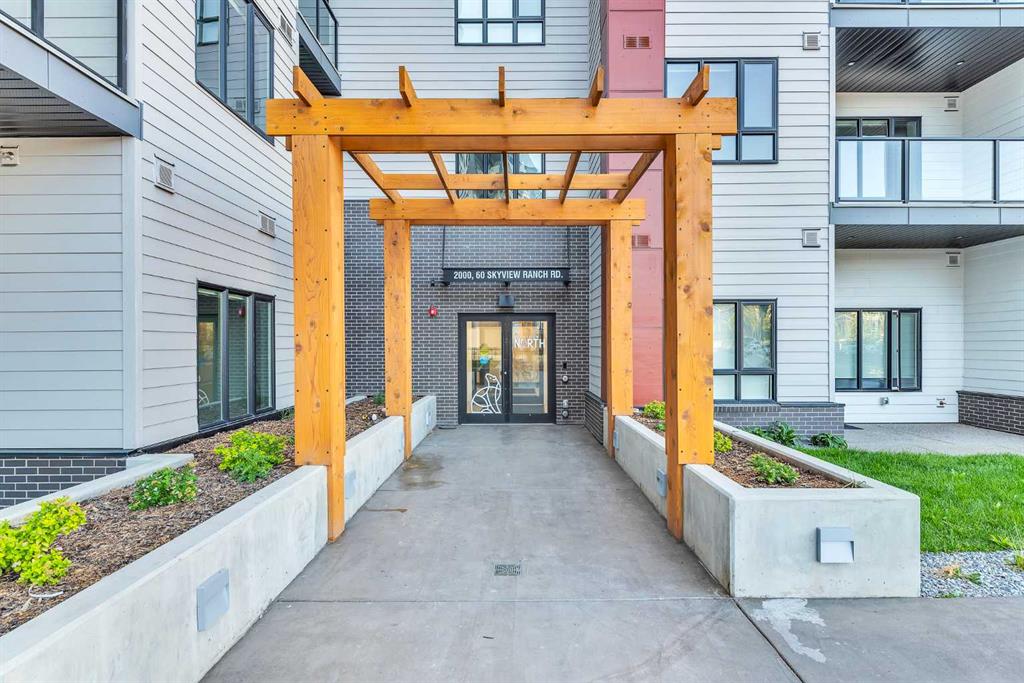 Experience modern living in this stunning brand-new main-floor unit located in the highly desirable Skyview Ranch community in NE Calgary. With its high ceilings, luxury vinyl plank flooring, and designer lighting package, this 2-bedroom, 2-bathroom home combines style with comfort. The open-concept design features a contemporary kitchen with stainless steel appliances, a large island perfect for casual dining or entertaining, elegant quartz countertops, and sleek soft-close cabinetry. The kitchen seamlessly connects to a bright, sunlit living area filled with natural light. A unique feature of this unit is the direct access to a private patio overlooking a beautifully landscaped front yard, offering the convenience of condo living with the feel of a single-family home. The primary bedroom includes a walk-through closet leading to a four-piece ensuite with dual vanities and an oversized standing shower. The second bedroom also features a walk-through closet with direct access to the main bathroom through a pocket door. An in-suite washer and dryer are neatly tucked away in a closet, stylish window coverings and the unit comes with a titled underground parking stall. Skyview North is perfectly situated near shopping at Sky Point Landing, green spaces, and playgrounds, with easy access to Stoney and Deerfoot Trail for a smooth commute. This property offers the perfect combination of modern design and prime location. Schedule your private tour today!
