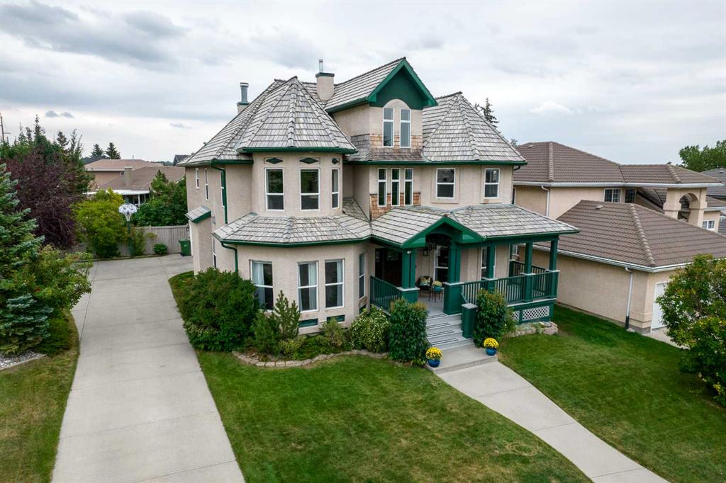 Located in the quiet and sought-after Uplands community in Hawkwood, this unique property stands out with its exceptional features. This 4-bedroom, 3.5-bathroom home spans over 3660 square feet, offering unmatched elegance. Upon entering the spacious foyer, you will immediately feel a warm and welcoming atmosphere. To one side, there is an octagon-shaped dining room with an inside archway and a unique plaster ceiling design, while on the other side, you'll find a living room and family room separated by a two-sided gas fireplace. The main floor design features pillars, archways, and an old-world charm. Additionally, the main floor includes an open-style kitchen with a dining nook, a butler's pantry/laundry room, and a 2-piece bathroom. The kitchen has been recently renovated and this custom kitchen boasts dual sinks, high-end Miele appliances, a coffee bar, lots of cupboard space, and quartzite countertops. The main floor also features newer flooring, paint, and trim work, as well as an abundance of windows that allow plenty of natural light to enter. As you ascend the winding staircase with wood/metal railings, you'll be greeted with a welcoming ambiance. The second floor houses a library/study with west-facing views and ample natural light. Each of the three bedrooms on this level comes with walk-in closets, and a 4-piece bathroom is situated between the 2nd and 3rd bedrooms. The primary room is truly remarkable, featuring a 3-sided gas fireplace, a spacious 4-piece ensuite with a separate shower and jetted tub, and a massive walk-in closet. Additionally, there is a retreat area perfect for enjoying a good book or soaking in the mountain views on a sunny day. Furthermore, each of the remaining bedrooms has access to a large balcony offering city views. Moving up to the third level, you'll find a peaceful paradise in the office space. The large windows offer fantastic views of the city skyline, making it an ideal workspace or retreat. The top level provides mountain views to the west, as well as views of C.O.P. and Winsport. Each level is hard-wired for the internet. The basement is fully developed and includes another bedroom, a 3-piece bath, a spacious recreation room with a gas fireplace and wet bar, and ample storage space. There is also a large workshop currently equipped with various tools, providing an ideal space for a craftsperson. Additional upgrades include a new high-efficiency furnace and heat pump installed in 2023, as well as new hot water tanks in 2021. From the kitchen nook on the main floor, you can access the back deck through your oversized sliding doors, offering privacy for morning coffee or entertaining. The deck leads to the large fenced backyard, making it ideal for kids. This wonderful family home is surrounded by walking paths and numerous amenities, including a private recreation centre. Oversized finished and insulated double garage. Don't miss the opportunity to see this truly exceptional family home - schedule a viewing today!