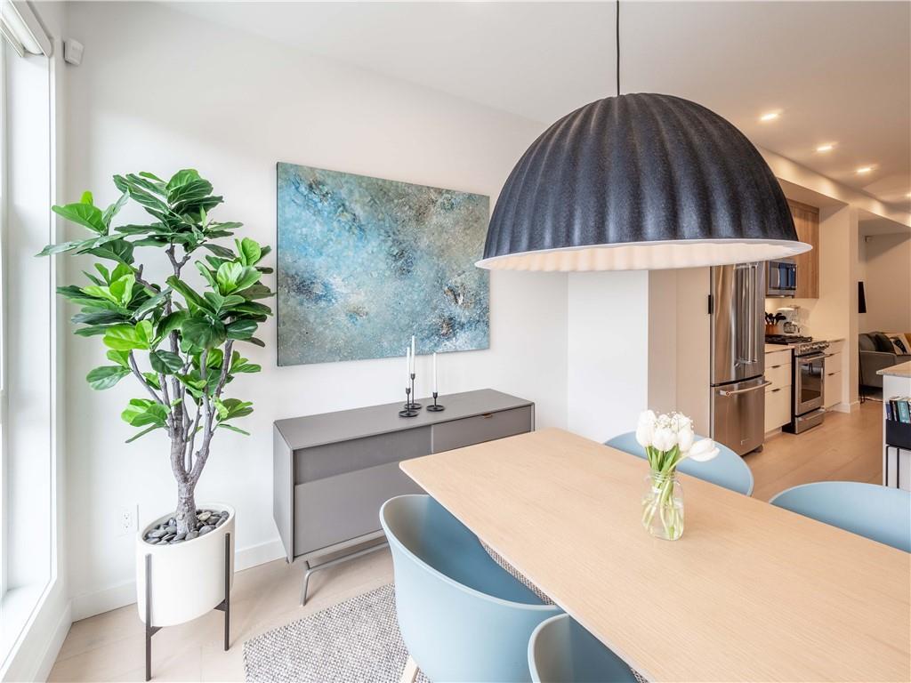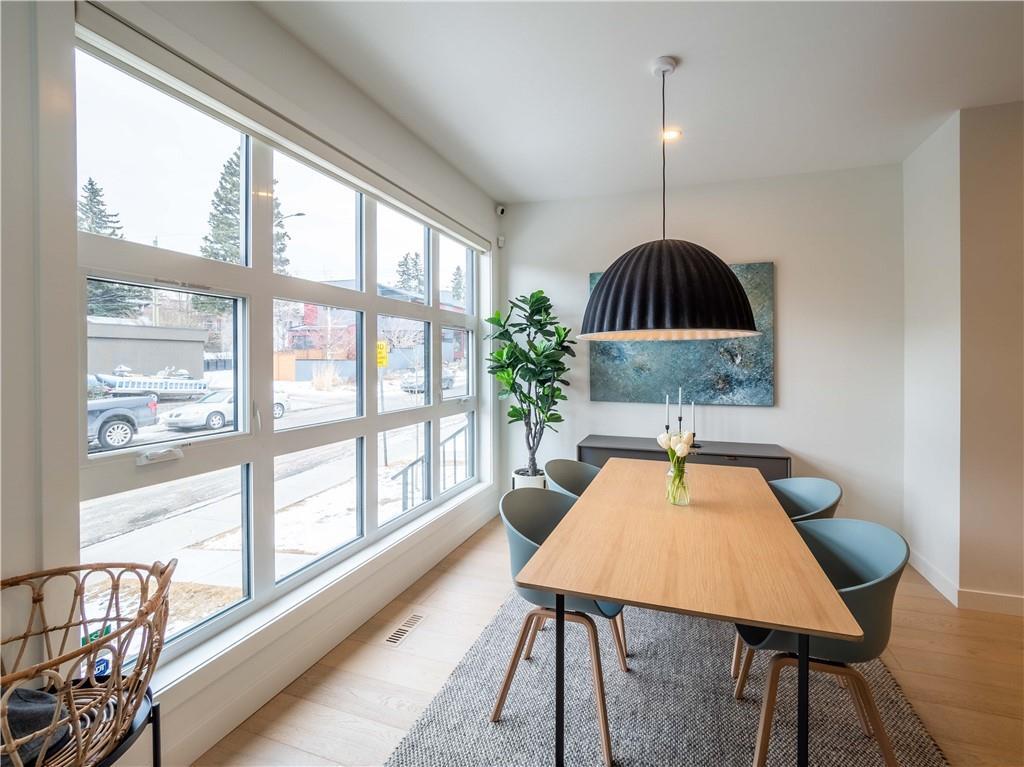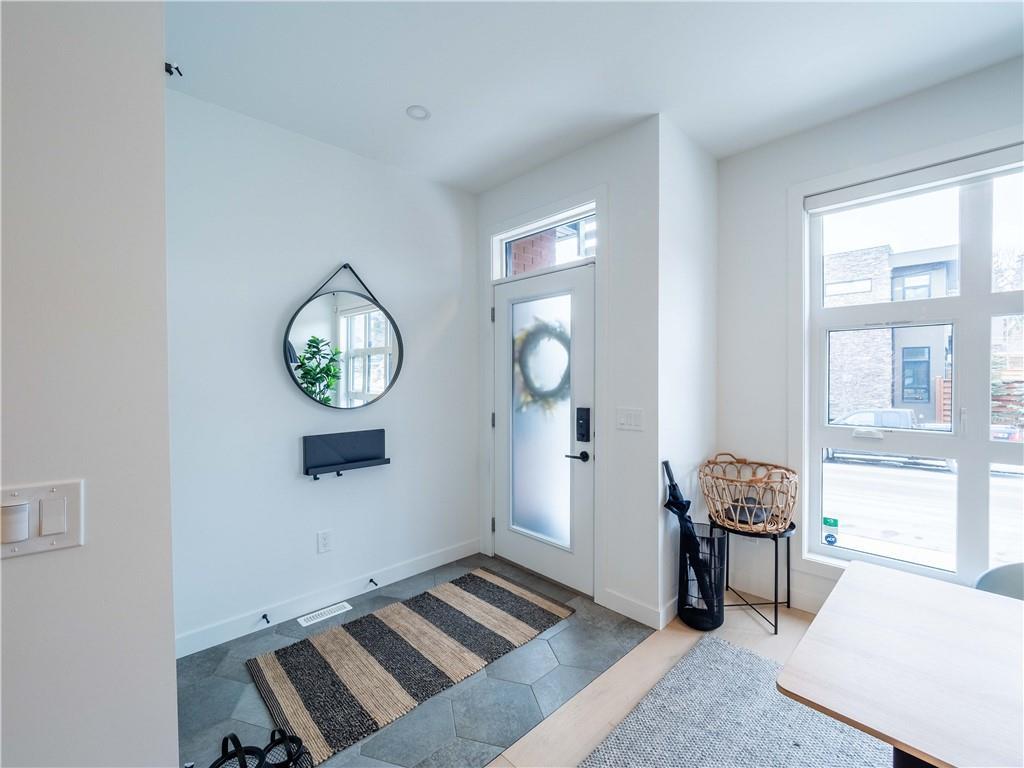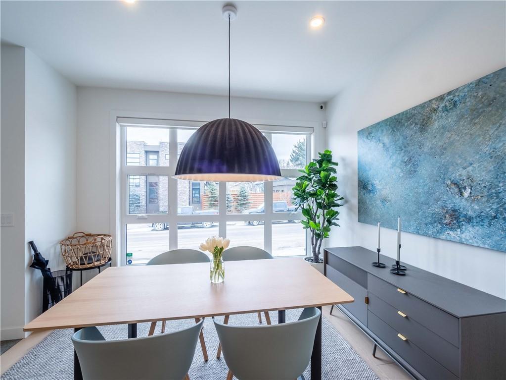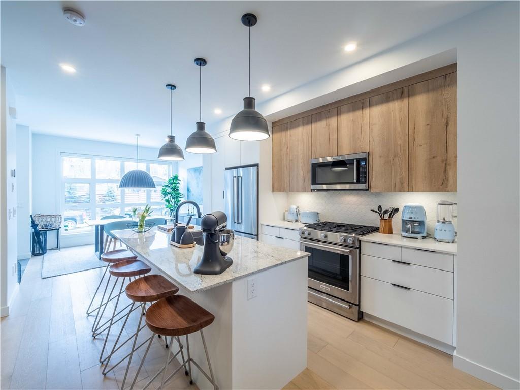 Marda Loop 28. A unique modern take on a classic design. One of the most iconic 4 townhome design by RNDSQR. Just like new and immaculately maintained. Fully developed on all three floors featuring almost 2500 square feet of meticulously crafted space. Three bedrooms, three and a half bathrooms plus a third floor Bonus Room with lovely east views over the treetops. The main floor design is bright and spacious with spacious separate living and dining room spaces. A Central kitchen with huge island, stainless steel appliance package, quartz counters and an abundance of cabinetry. Sliding doors open up to a cozy west deck for evening bbq's or just an evening cocktail. The second floor features two generous sized bedrooms. The master with a huge walk-in closet and full ensuite, with a dual person shower adorned with European tiles and fixtures. An additional second bedroom with an ensuite full bath with tub This level also conveniently encompasses your laundry area. The third level features a huge bonus room with vaulted ceilings, and a large private roof-top patio. A perfect place to spend the evenings under stars, or enjoy the sunrise. The Lower level features a spacious plan with high ceilings, large Bedroom, full bath and a great room with a gym area, ready with custom flooring for your equipment. This unit is highly upgraded with European quality finishings, including hardwood flooring on all three above grade levels, smart home automation, featuring cameras, automated locks, automated high end custom window coverings, security screens, central a/c and soft water system. An Original owner occupied home, with pride of ownership truly visible. Truly looks and feels like a new home. The single garage is large enough for a Ford F150 or equivalent, in case you may have one. Lots of room height and depth. A truly fantastic location just steps to the park, marda loop, richmond green, and all the best inner city amenities