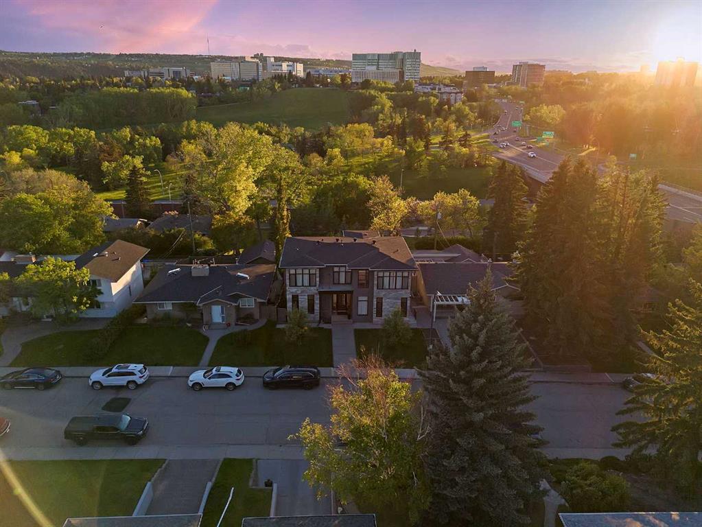 Welcome to this modern masterpiece, a fully finished walkout with 4 bedrooms, each featuring en-suites, and over 4,800 square feet of developed living space. Situated on a premium 53'x111' lot with a West-facing backyard, this home boasts an unobstructed view of the mountains and backs onto serene green space, ensuring privacy and picturesque landscapes with no neighbors behind. The interior showcases wide plank oak hardwood and marble floors throughout. A custom built-in wall unit and desk enhance the bright and spacious den. The great room combines an open concept family room, complete with a gas fireplace and soaring 10' ceilings, with a dining area featuring 20’ ceilings open to above and large windows that bathe the space in natural light. The Euro-style kitchen is a culinary dream, outfitted with white cabinets, dark accent cabinetry, granite countertops, and top-of-the-line Wolf appliances, including a 6-burner gas stove, cappuccino maker, and steam oven. A custom wet bar with a curved feature wall adds a touch of elegance. The walk-through butler's pantry leads to a mudroom with a separate entrance, perfect for family use. Head upstairs via the elegant spiral staircase to 3 bedrooms, each with full en-suites and walk-in closets. The primary suite features a private balcony, an expansive walk-in closet, and a spa-like 7-piece ensuite with a soaker tub and body spray in the shower. The custom curved, open-tread staircase and hardwood floors add stunning detail to the upper landing. The fully developed walkout basement, with in-floor heating, includes a fourth bedroom, a full bathroom, a rec room, a wet bar, a ventilated cigar room, and a wine room. The basement opens to the sunny west-facing backyard through two sets of doors. The oversized double garage is complete with upgraded electric and is ready for your imagination to add a capsule house or backyard suite on top of the garage (A secondary suite would be subject to approval and permitting by the city/municipality) Conveniently located with access to all levels of schools, parks, shopping, dining, and public transit, this home blends sophisticated elements with a visually appealing open design, making a lasting impression and offering warmth and luxury for any family. Checkout the 360 Tour with Floor Plans or book a showing today!