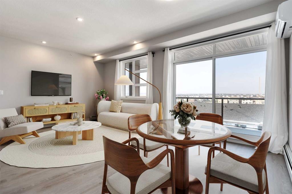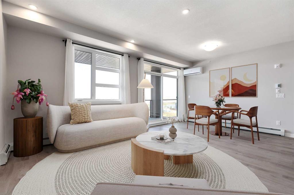 Welcome to unparalleled LUXURY nestled in the new community of Livingston, an great community gracing Calgary’s sought-after NW quadrant. Here, in the midst of urban sophistication, stands a BRAND NEW 1,016 sq ft TOP-FLOOR executive condo, a beacon of refined living and contemporary ELEGANCE. Offering 2 BEDS + 2 BATHS + TITLED UNDERGROUND PARKING STALLS (2 Tandem) + 1 STORAGE UNIT + Air Conditioning, this residence offers the EPITOME of modern comfort and style. The open floor plan beckons, effortlessly blending the kitchen, dining, and living areas into a HARMONIOUS sanctuary for everyday living and gracious entertaining. One of the crowning jewels of this condominium is its EXPANSIVE balcony, a serene OASIS offering VIEWS of the beautiful pond. Step inside, and be greeted by a symphony of LUXURIOUS touches and refined finishes. Light wood color LUXURY VINYL flooring stretches across the expanse, a timeless foundation upon which the rest of the space unfolds. The walls, adorned in a palette of understated elegance, serve as a backdrop for the unfolding drama of daily life. The kitchen, a CULINARY HAVEN fit for the most discerning chef, beckons with its sleek lines and modern amenities. HIGH-END stainless steel appliances and PREMIUM quartz countertops stand as testaments to both form and function, while PRISTINE modern cabinetry offers ample storage space for every culinary need. A stunning backsplash, intricately designed and artfully executed, serves as a focal point, infusing the space with a sense of CHARACTER & CHARM. Next to the dining area lies the entrance to the second bedroom, a versatile space offering endless possibilities. Whether utilized as a home office/gym or transformed into a welcoming guest retreat for visiting loved ones, this room embodies the essence of modern flexibility and convenience. A conveniently located 4-piece main bath stands ready to accommodate. Down the hall from the main entrance, a discreet doorway grants access to the in-suite laundry facilities, seamlessly blending utility with elegance. The living hall, a corridor of possibilities and hidden wonders, leads to the luxurious PRIMARY RETREAT that offers a private escape from the cares of the world, a haven of comfort and tranquility. With access to the EXPANSIVE BALCONY from the main living area, residents are invited to bask in the splendor of outdoor living. The primary ensuite offers a luxurious escape from the rigors of daily life. Luxurious dual vanities with quartz countertops, spacious modern glass shower & HUGE walk-in closet are meticulously crafted and elegantly appointed. Discover the charm & excitement of Livingston, one of Calgary’s most sought-after new communities, designed with modern living and lifestyle in mind. Located in the heart of Calgary’s thriving North-West, Livingston offers a seamless blend of urban conveniences, scenic landscapes, and a strong sense of community. CALL TODAY to book your PRIVATE TOUR!!