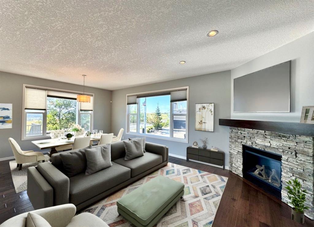 UNBELIEVABLE NEW price! This Gorgeous family home nestled on Cranson Ridge offers breathtaking UNOBSTRUCTED MOUNTAIN VIEWS on a larger west facing lot! FULLY DEVELOPED & turnkey awaiting your family. The interior features engineered hardwood flooring, high ceilings, air conditioning & tonnes of natural light! You’ll love the beautiful espresso kitchen cabinetry, lots of granite counter space, spacious island which all highlights the modern design and functionality of the home. The large dining area and living room, complete with a corner fireplace, create inviting spaces for family gatherings and entertaining. The outdoor space is equally impressive, with a large two-tier deck that provides the perfect setting for enjoying the gorgeous mountain views and relaxing on warm summer days. The view is a work of art that changes daily, simply beautiful. The upper level has an amazing bonus room, great for watching movies. The master retreat features a walk-in closet and a luxurious ensuite, with double vanity, deep soaker tub and rainfall shower, all adds to the home's appeal. The additional two good sized bedrooms, each with ample closet space, plus the convenience of upper-level laundry make this floor highly functional for family living. The FULLY DEVELOPED BASEMENT adds further value, offering a family room, wet bar/kitchenette, a full bathroom, and a fourth bedroom, all complemented by natural light from sunshine windows. Located in close proximity to schools, shopping, and scenic walking paths along the river and ridges, as well as easy access to major roadways like Deerfoot and Stoney, this home perfectly balances luxury, comfort, and convenience. It truly is a remarkable opportunity for any family!