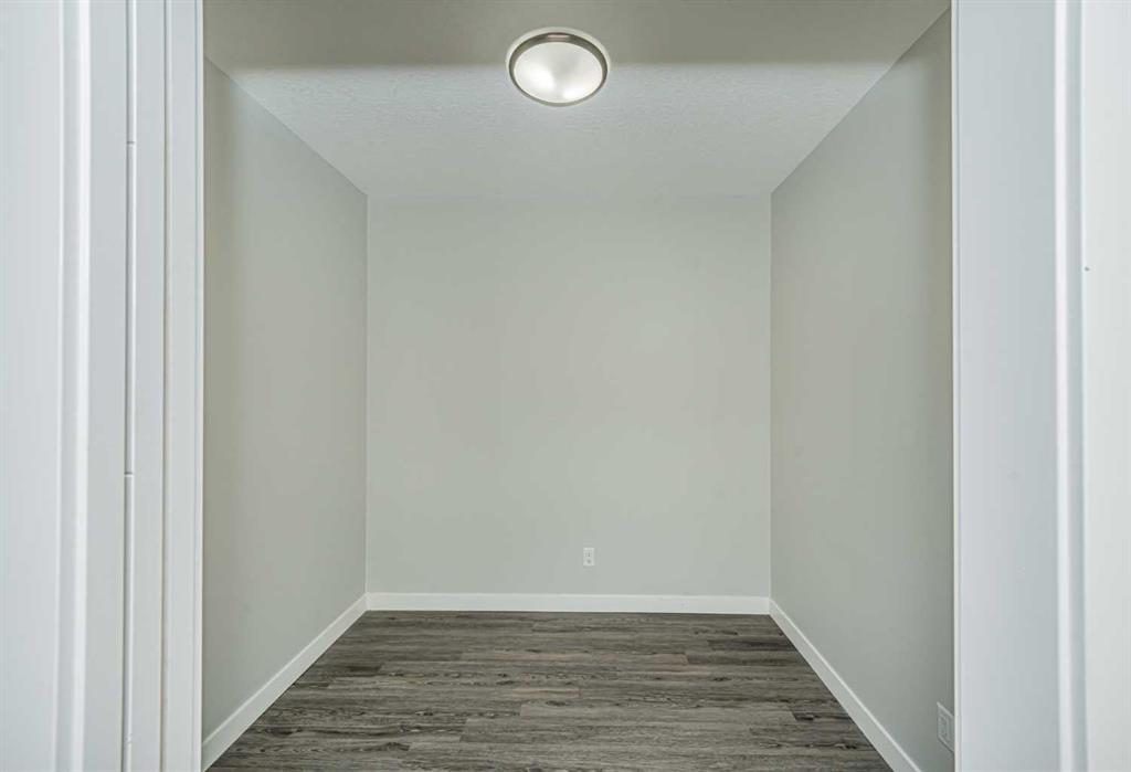 Welcome to the Axess building in the historic Currie Barracks community! This stunning 1-bedroom unit + Den boasts a south-facing view overlooking lush greenery. As you step inside, luxury vinyl plank flooring and abundant natural light streaming through oversized windows greet you. The well-appointed kitchen showcases a refreshing blend of crisp white and dark cabinetry, upgraded stainless steel appliances, including a gas stove, quartz countertops, and a designer tile backsplash. An open counter seamlessly connects the kitchen to the dining area, creating a perfect space for entertaining. The spacious living room offers access to a balcony with a gas BBQ line and unobstructed southern views—an ideal spot to unwind and enjoy breathtaking sunsets. The surrounding greenery enhances the already captivating scenery. The generously sized primary bedroom features a walk-through closet that leads to the elegant 4-piece bathroom, complete with tile flooring, quartz countertops, and a soaker tub. This gorgeous unit also includes in-suite laundry, underground parking with a car wash, and a storage locker conveniently located in front of the parking stall. Situated in a prime location, you're just steps away from Mount Royal University, parks, pathways, shopping, and enjoy quick access to Crowchild, Marda Loop, and the downtown core. Truly, a wonderful place to call home.