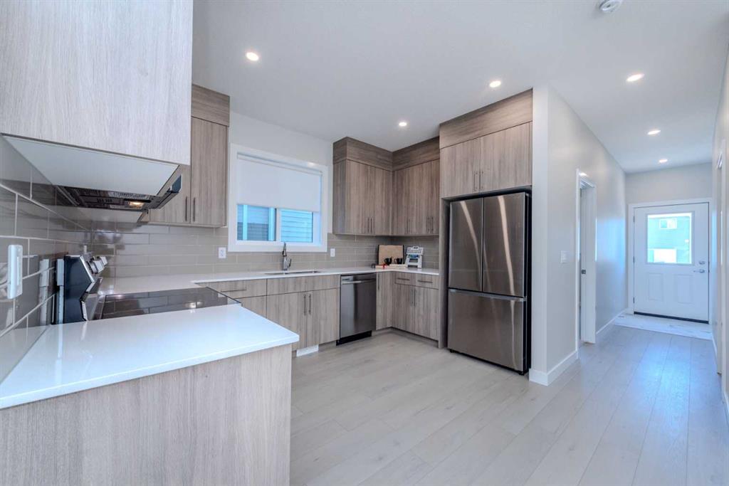 This brand new duplex offers modern living with a main floor bedroom and full washroom, perfect for guests or multi-generational families. The open-concept kitchen features new stainless steel appliances and elegant finishes, while upstairs boasts three spacious bedrooms, including a master with an ensuite, plus a full washroom and convenient laundry area. A separate side entrance leads to the unfinished basement, offering potential for customization. Stylish, practical, and move-in ready, this home is designed to meet the needs of today’s families.