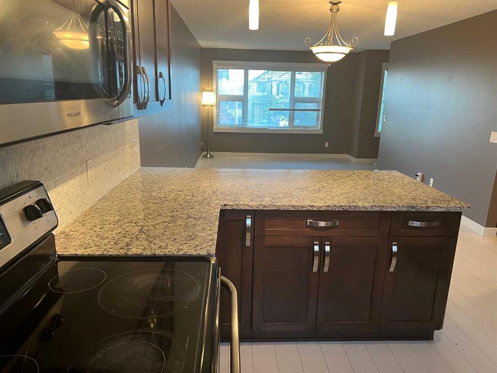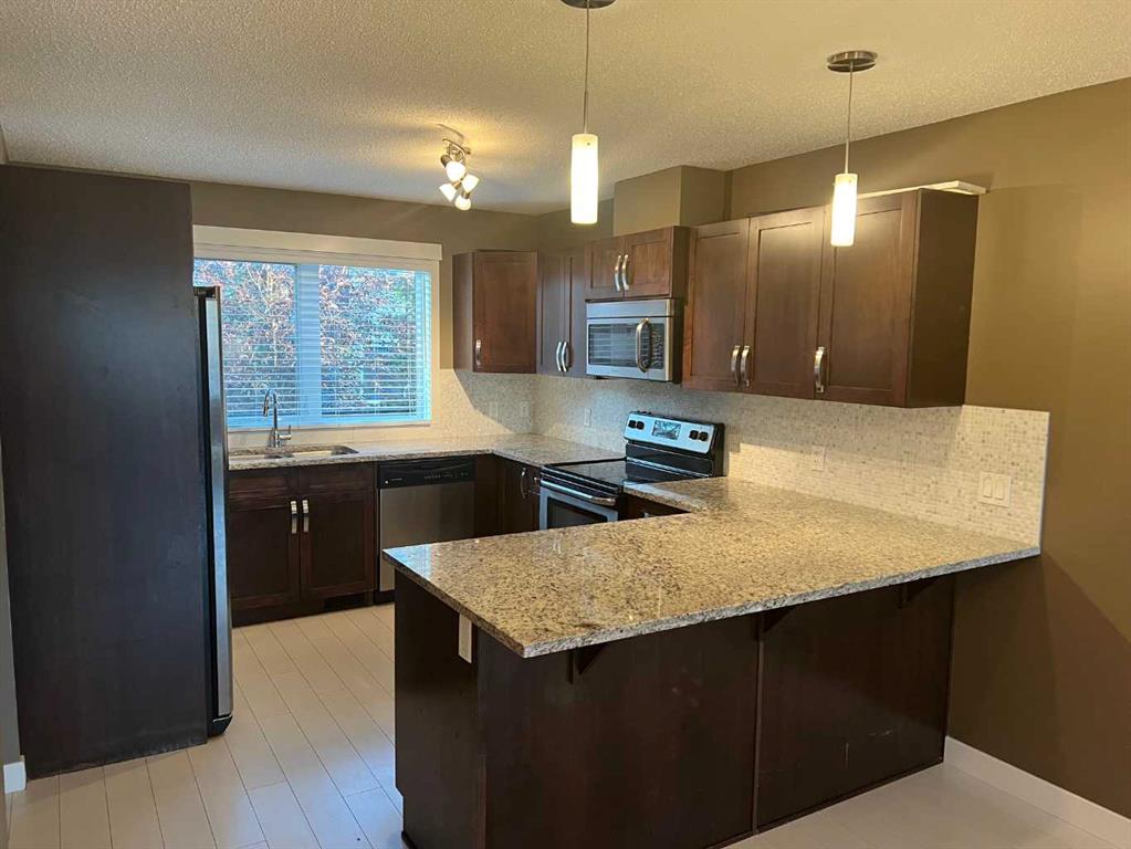Welcome to Coventry Station this townhouse features a master bedroom with en-suite another good size bedroom and a full bath laundry room is on the upper level on the main level there is a living room dining room and kitchen large windows open floor plan loads of upgrades including engineered wood flooring carpet and ceramic tile stainless steel kitchen appliances granite countertops white stacking washer and dryer this is located in a very quiet location close to transit sports complex shopping centers schools Deerfoot trail and Stony Trail.