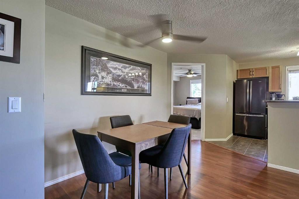 Incredible value in this spacious 2 bedroom, 2 bathroom condo offering 970 SF of living space with an underground titled parking in desirable community of McKenzie Towne. Rarely found, the condo fees include ALL major utilities, such as electricity, gas, heat, and water. The unit welcomes you to an over-sized tile foyer seamlessly transitioning to the dining area and open-concept kitchen with timeless maple cabinetry and updated appliances. The living room gives access to the balcony where you can enjoy morning coffee. The primary bedroom features ample space for a sizable bed and includes a walk-through closet leading to a 4-piece ensuite bathroom. A generously scaled second bedroom, 4 piece bathroom, convenient insuite laundry (with new washer and dryer) and large storage room complete this unit. Don't overlook the updated carpet, blinds and AC unit making this home move-in ready! Perfectly situated just steps away from the vibrant 130th Avenue shopping district, schools, playgrounds, and gorgeous pathways for lovely evening walks, this condo offers unparalleled convenience and lifestyle. Don't miss out!