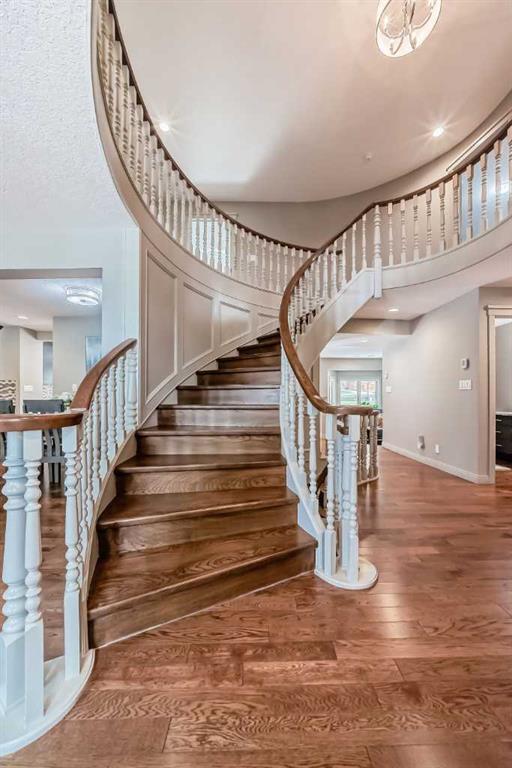 This perfect family home nestled in the mature community of North Haven, 10 minutes away from downtown is a gem. 5039 Norris Road has beautiful curb appeal with a driveway/ garage off the front street, and a private courtyard. As you enter the home you are greeted by a grand staircase that leads to an unexpected 2nd floor. The main floor, however has lots to offer to its new owner as it has a spacious living/dining room combo to the left of the entrance, which includes a large 3'4" x 9'7" dry bar. At the rear of the house, there is a large kitchen with new 2020 top of the line Kitchen Aid appliances such as a gas range stove, built-in microwave and oven plus soft close cabinet & drawers, as well as an oversize island which is great for hosting or dinning. Additionally, there is a built-in desk. The open concept kitchen allows for the homeowner to have full view of the sunken family room, which includes a gas fireplace, and built-in bookshelves. The main floor also offers a 2-piece bathroom, XL walk-in front closet, and laundry/mud room with built-in bench and coat hangers. The homeowner will also find an LG Styler Steamer Closet, which is included in the purchase of the home. In the double attached garage, the cement has been coated and there is potential for lots of storage. Upstairs, the homeowner will be greeted with a large bonus room, with an office, which could also double as a guest room, off to the side. There are also 3 master bedrooms. The largest of the 3 has a balcony overlooking the beautifully landscaped back yard, and Nose Hill Park. Back inside, there is a huge ensuite with a 11' vanity featuring double sinks and a makeup area. The bathroom also has a walk-in steam shower with a bench, plus 4 shower heads and private toilet room. As you travel through the ensuite you will enter the custom-built walk-in closet, perfect for a large wardrobe. There are 2 additional master bedrooms on the 2nd floor, both with ensuites. One of them having a large soaker tub, and the other a glass enclosed shower. While both bedrooms offer spacious closets, one of them has a walk-in closet with a window providing natural light. Down in the basement, at the bottom of the stairs there is a flex area. There's also a theater room with a 10' projection screen... perfect for movie night. There are 2 large storage rooms (one with an HRV unit) which can be finished to the new homeowners liking, potentially converting one into a wine cellar. There is also a well thought out utility room with another HRV unit, an instant hot water tank, and organized piping for the hot water baseboard heaters. A 2-piece bathroom completes the basement. The backyard has a large patio with mature landscaping and views of Nose Hill. This home is situated on a quiet street in a sought-after neighbourhood close to a walking tunnel that leads to Nose Hill Park, schools, shopping, main roads, community center, and the Winter Club.
