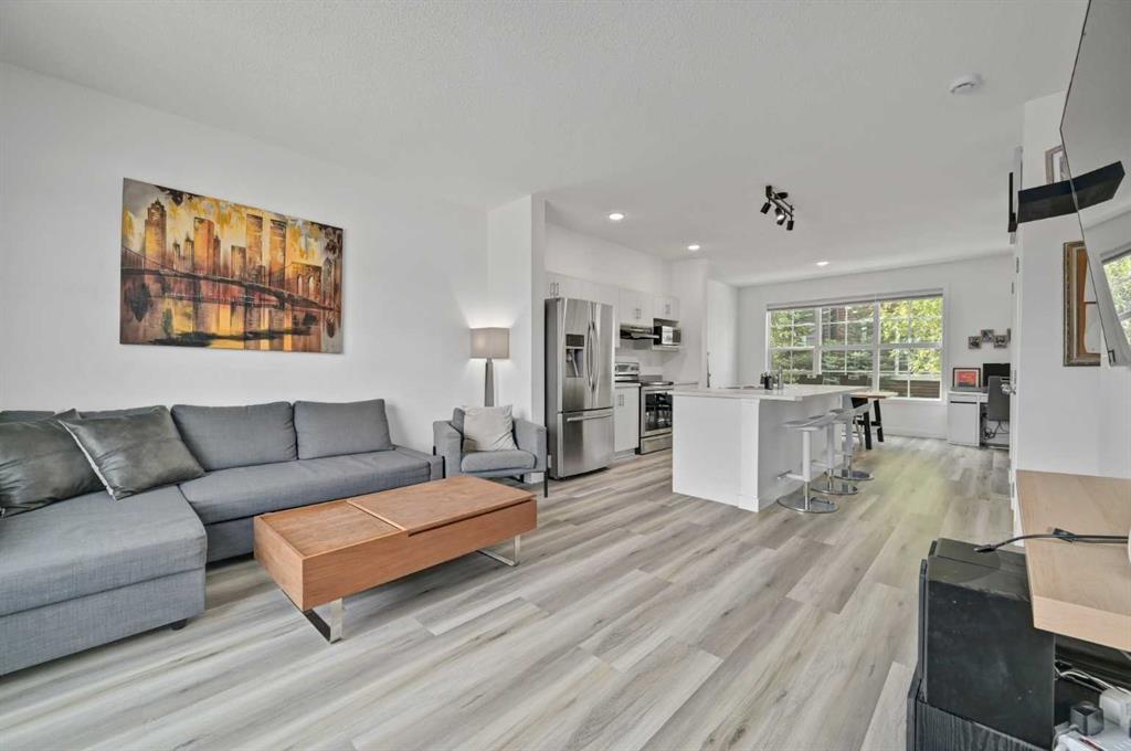 This 'Homes by Avi' built, open-concept contemporary townhome features a bright main floor filled with natural light. The spacious dining area leads into a sleek white kitchen with an eating bar and living room. A convenient powder room is also on the main level. Upstairs, you'll find three bedrooms, including a primary suite with a 4-piece ensuite and a large walk-in closet. Two additional well-sized bedrooms and another 4-piece bathroom complete the upper level. The fully finished basement includes a rec room, a fourth bedroom, a third 4-piece bath, laundry, and extra storage space. Outside, the low maintenance fenced backyard offers space for entertainment and barbecuing. The home comes with a titled parking stall and plenty of visitors parking right outside the unit. Living in this well-managed Silverado complex, you'll enjoy nearby open fields, pathways, a community garden, and schoolyards. Amenities, public transit, and easy access to Stoney Trail are close by, with Granary Road, Spruce Meadows, and Sirocco Golf Course just minutes away.