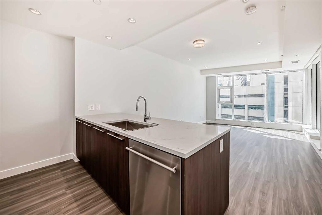 Welcome to urban living at its finest in vibrant East Village community! This one-bedroom, one-bathroom + den condo in Arris Residences boasts contemporary design and luxurious finishes, offering the perfect blend of style and comfort. As you step into this brand-new residence, you're greeted by an abundance of natural light flooding in through large, west-facing windows, illuminating the open-concept living space. Enjoy breathtaking panoramic views of the city skyline, creating a captivating backdrop for both relaxation and entertainment. The modern kitchen is a chef's delight, featuring sleek cabinetry, premium stainless steel appliances, and ample counter space for culinary adventures. The seamless flow from the kitchen to the living area makes it ideal for hosting gatherings or simply unwinding after a busy day. The spacious bedroom offers a tranquil retreat, complete with generous closet space for all your storage needs. Need a home office or a cozy reading nook? The versatile den provides the perfect solution, allowing you to customize the space to suit your lifestyle. Indulge in the ultimate urban lifestyle with access to a host of amenities, including a fitness center, indoor pool, steam room and sauna, hot tub, social room, concierge and outdoor terrace space. With shopping, dining, and entertainment options just steps away, every convenience is within reach. Don't miss this opportunity to own a piece of the dynamic East Village community. Schedule your viewing today and experience city living at its finest!