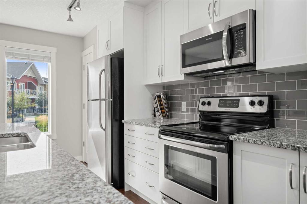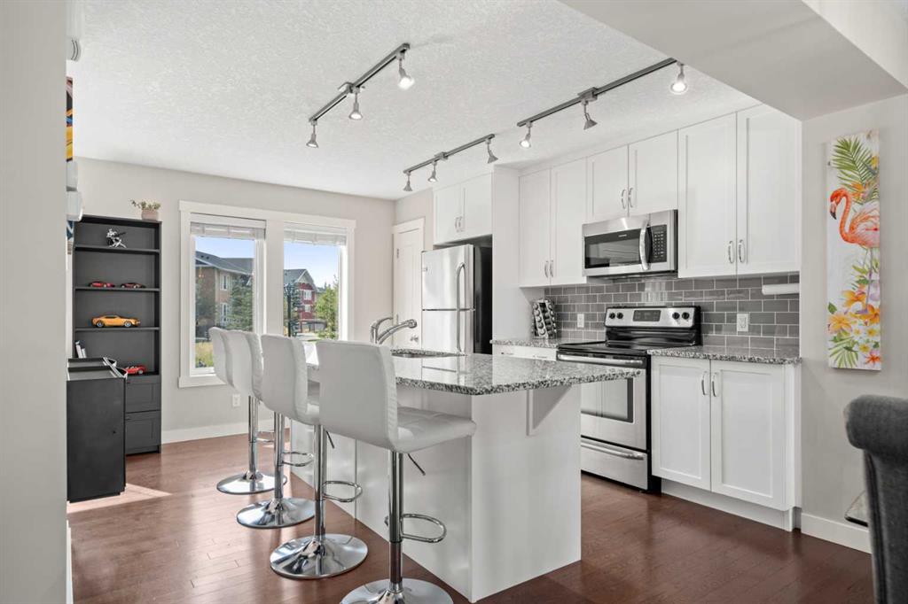 Welcome to this fabulous end unit townhouse with a double car garage in the popular lake community of Auburn Bay. This fabulous home demonstrates pride of ownership throughout, and benefits from having a fenced patio, a great family room/den on the ground floor - perfect for those working from home and 2 master bedrooms with ensuites. As you enter into the home you will appreciate the bright and airy family room/den with views over your front patio. On the main floor there are gleaming hardwood floors and a spacious living room with a door onto the balcony - perfect for BBQs, an awesome dining area and another office/den space. The kitchen has white cabinets to the ceiling, a large island, granite counters, pantry, stainless steel appliances and is a great space for prepping meals. Completing this level is a half bath. On the upper level are 2 large master bedrooms, both featuring walk in closets and 4-piece ensuites. There is a laundry on this level too. Did I mention the double car attached garage? This end unit has lots of natural light from the abundance of windows and must be viewed to be appreciated! This home is located close to the shopping at Auburn station, there is a park/playground 2 mins walk away and of course you have all the fabulous amenities this Lake community has to offer. View 3D/Multi Media/Virtual/Tour!