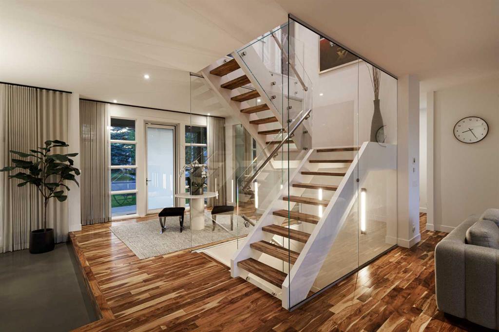 ** Open House Saturday November 2 - 2:00pm - 4:00pm** A timeless masterpiece, situated on a quiet premium tree lined street in Briar Hill. This home has been impeccably maintained, encompassing quality and detail throughout. With over 4,100 Sq ft of developed living space, this home integrates modern architecture with exceptional class and state of the art design. Concrete landscaping and structure coupled with stone and cedar accents give stunning curb appeal. A welcoming entrance and Main Floor boast spectacular natural light all day with east and west floor to ceiling windows and skylights throughout. Timeless design and open concept living, with a functional layout featuring: Gourmet kitchen with high gloss white touch-latch cabinets, solid quartz counters & waterfall island with built in eating nook, Wolf appliances (dual ovens, gas cooktop & microwave), Sub Zero fridge, private office, exquisite powder room, floating staircase with tempered glass surround, sunken dining room, large mudroom with rear door and sliding doors to an elevated patio with built-in Wolf BBQ and firepit. A treelined backyard provides privacy with 2 large seating areas and grass offsetting a heated oversized double garage. Attention to detail throughout this house with custom drapery and furniture on all levels, premium wallcoverings and design choices by Paul Lavoie and The Heather Company. The upper level is complete with 3 bed/3 bath and a den featuring a custom millwork executive desk and treelined views off the balcony. The 3rd bedroom has been transformed into an opulent Paul Lavoie designed dressing room/closet featuring an ensuite, makeup vanity, custom millwork and high-end lighting (could easily be converted back to its original state). The primary bedroom is compete with downtown views, large walk-in closet and a 5 pc bathroom with steam shower/water closet. The basement was fully developed and designed by Paul Lavoie in 2020 with a large rec space/movie area, full wet bar with island, gym with floor to ceiling mirrors, 4th bedroom & full bathroom with steam shower. The basement also features a storage room and well-maintained utility room. Other notable features includes new high efficiency furnaces, A/C, new water heater & softener, wireless Lutron lighting, centralized A/V rack with wiring to all rooms & built-in speakers, custom millwork throughout, 9ft solid core doors. Briar Hill is a highly sought after, premium inner-city neighborhood close to downtown, parks schools, the Calgary Winter Club and all necessary amenities.