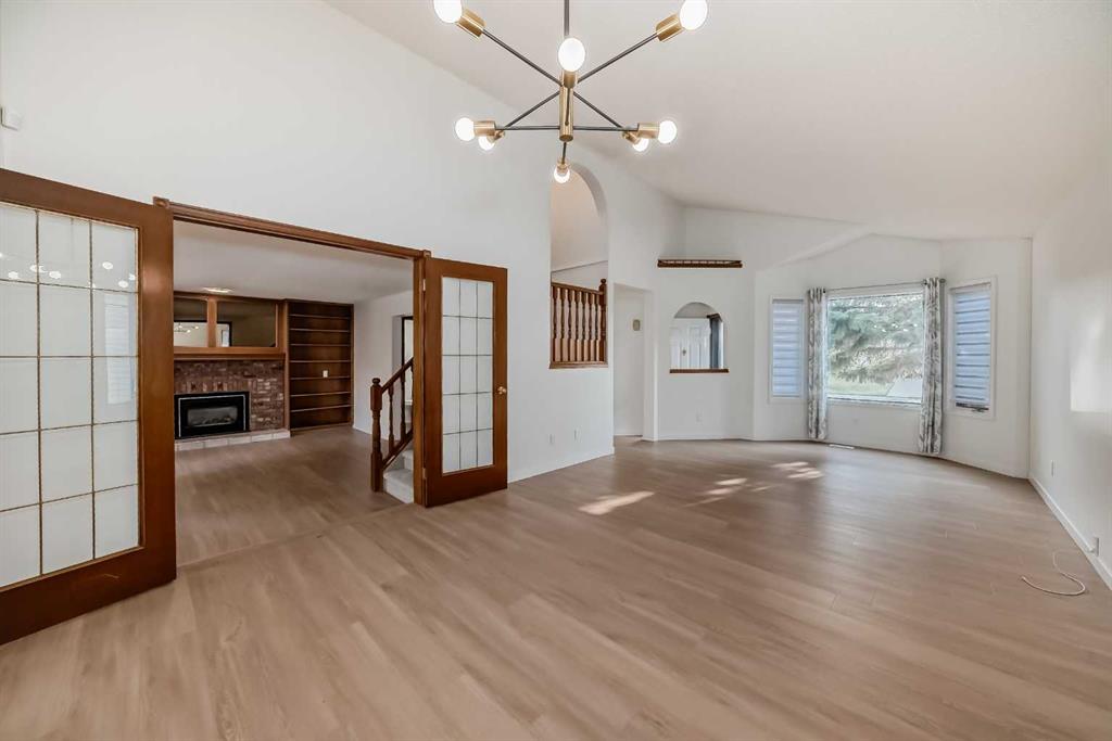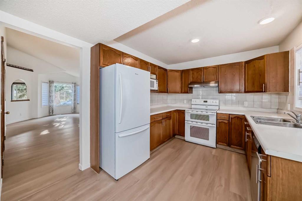 This bright and sunny two-storey split home boasts a fully developed, legally suited walk-out basement. It backs onto a park with a walking path and has new white vinyl fence on both sides. The home features vaulted ceilings in the living and dining rooms, along with a spacious main floor family room complete with a gas fireplace and custom bookshelves. The eating nook offers beautiful park views and access to a low-maintenance deck. The master bedroom includes a walk-in closet and a four-piece ensuite with a jetted tub and separate shower. Two additional bedrooms complete the upper level. New upgrades include fresh paint, new flooring on the main and upper levels, new light fixtures, and Poly-B free piping. This home is in an excellent location, quite street, backing onto a large park in the family-friendly community of MacEwan Glen, close to schools, green spaces, shopping, Nose Hill Park, and major roadways.