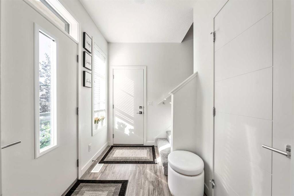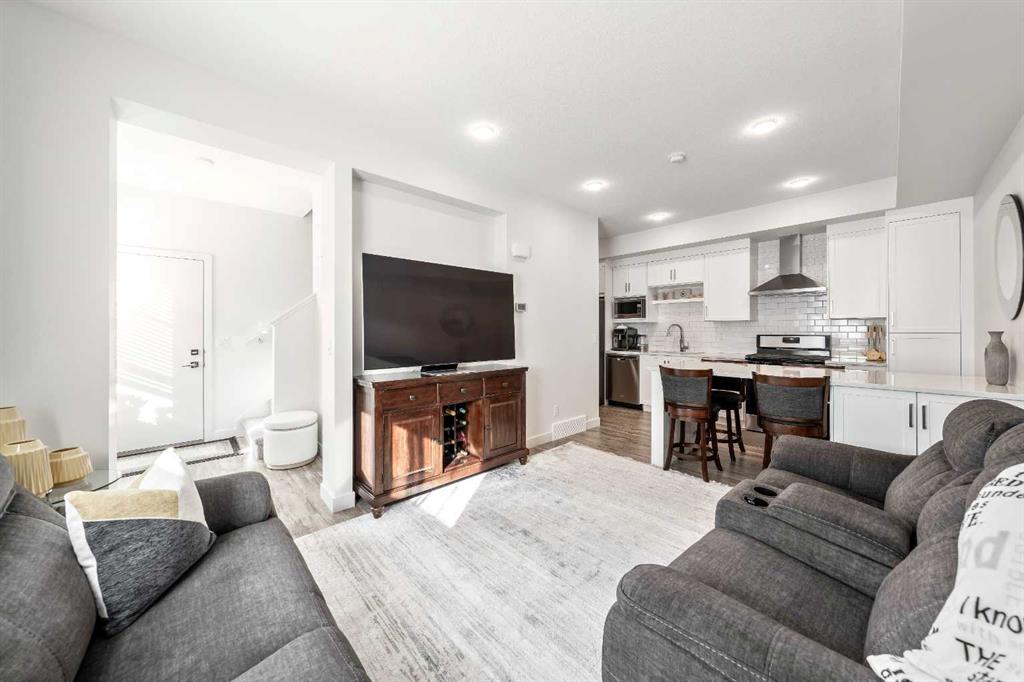Welcome to this immaculate, move-in ready 3-bedroom, 3.5 -bathroom townhome, offering over 1,400 sq. ft. of stylish living space in one of the city's most sought-after community's. Perfect for families or professionals, this home blends modern convenience with comfort in a vibrant neighborhood full of amenities. The bright, open-concept main floor is filled with natural light from large windows, featuring upscale wide plank laminate floors that add a sleek and modern touch to the living areas. The upgraded kitchen is both functional and elegant, featuring white shaker cabinets, a huge island with gorgeous white quartz countertops, stainless steel appliances and subway tile backsplash. The central peninsula island provides tons of versatility with a flush eating bar and makes the kitchen ideal for cooking and entertaining. The light filled primary bedroom is your private retreat, offering a walk-in closet with California closet built ins and a beautiful private ensuite. The oversized second bedroom provides plenty of room for guests, children, or a home office, complete with its own generous closet. The fully finished basement extends your living space and provides an extra bedroom and bathroom as well as a utility room complete with laundry as well as additional storage, Outdoors, you’ll find a private front facing yard with a great concrete patio, perfect for summer evenings and get togethers. Parking is super convenient with an attached single-car garage, while the drive pad is large enough to park an another car. In addition there is also a deeded second parking stall along with visitor parking nearby for your guests. All this located in an amazing location close to both the Legacy and Walden shops, and within quick access to public transit, Stoney Trail, Highway #2. Families will love the proximity to parks, schools, playgrounds, and churches, while outdoor enthusiasts can take advantage of the nearby bike paths, dog parks, soccer fields, and skate park. And Seton is just minutes away for a multitude of entertainment options.