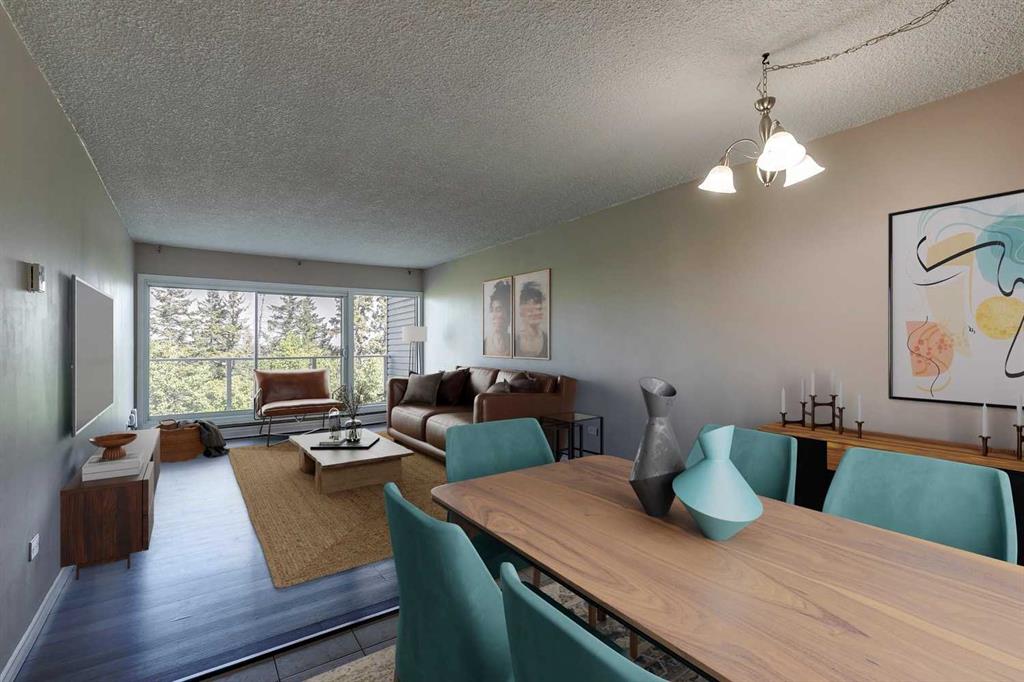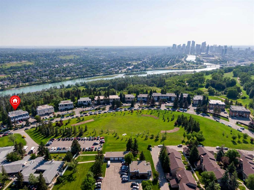 Bright and airy 2 bedroom condominium in a concrete building with views over the idyllic forested Douglas Fir escarpment. Nestled in desirable Spruce Cliff, surrounded by greenspace with proximity to all the action! This unit boasts great natural light with plenty of windows and huge balcony featuring a new membrane and glass railing, perfect for relaxing and looking out over both vast green space and a city vista. Living and dining room with large patio doors, lots of closet space, and a kitchen with upgraded appliances. Excellent layout for roommates or having guests. Meticulously maintained self-managed building with strong sense of community. Clean, common area laundry room on the lower level, plus secure outdoor bike storage. Assigned parking stall is conveniently located right outside the front door with ample street parking available for guests or a second vehicle. With unparalleled access to Douglas Fir and Bow River trails, situated above Shaganappi Golf Course, and just a short walk or run to Edworthy Off-leash Park. Easy access to Bow Trail, Sarcee, and other major thoroughfares. Enjoy proximity to both nature and the city: LRT, downtown, Westbrook Mall, the Bow River and river pathway system. A convenient commute to universities, hospitals, downtown, or to the mountains. A great find for investors or those looking to enter the market in a prime location.
