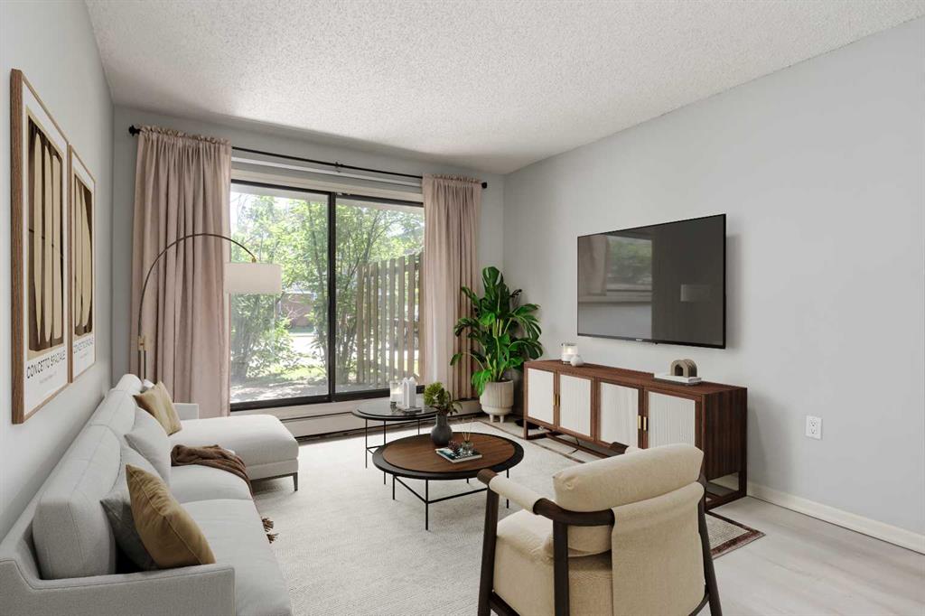 Beautifully UPDATED CONDO in Sunalta's West Village. Seize the opportunity to own a meticulously maintained 1 BED + 1 BATH condo in the lively West Village community of Sunalta. This exceptional starter home, downsizing option, or investment property boasts a prime location next to Sunalta Park and the new Community Hub. Just one block from the West LRT, two blocks from river pathways, and surrounded by TRENDY restaurants and breweries on 17th Ave SW, this condo places you in the heart of convenience and activity. Inside, this BEAUTIFUL condo features LOW CONDO FEES and a spacious layout with a large private patio for outdoor living. The generously sized kitchen offers ample white cupboards, counter space, and well-maintained appliances. The unit has been fully updated with LUXURY vinyl plank flooring throughout. The large primary bedroom and the stylish bathroom, complete with a large tub/shower combo and newer vanity and sink, round out this IMPRESSIVE home. The entire building has undergone a comprehensive renovation over the past two years, including updated lighting, ceilings, walls, trim, doors, hardware, vinyl plank flooring, commercial-quality baseboards, basement washrooms, and a modernized laundry room. The chic new lobby features an eye-catching wall, adding a touch of sophistication. Residents enjoy UNDERGROUND assigned heated parking, a dedicated storage locker, secure bike storage, and upgraded parkade lighting, enhancing both convenience and security. Additional building amenities include an elevator, smart card-operated shared laundry, a camera security system, door security with intercom and Amazon delivery integration, and a newly installed 6 ft. security fence at the rear. Telus Fiber high-speed Internet is available throughout, with six outdoor visitor parking spots, and the building boasts a well-managed reserve fund. Positioned ideally, this condo is half a block from the West LRT, adjacent to Sunalta Park and the new Community Hub, and just a couple of blocks from river pathways and 12th Ave. bike trails. Nearby, you'll find new condo complexes with eateries and cafes at 14th Street and 10th Avenue, as well as the Calgary Tennis Club just a few blocks away. This stunning condo, situated in a well-managed building with strong financials and an active community, is ready to be yours today!! Don't miss this chance to live in a VIBRANT neighborhood with all the conveniences at your doorstep. CALL TODAY to schedule a viewing and make this beautiful condo YOUR NEW HOME!!