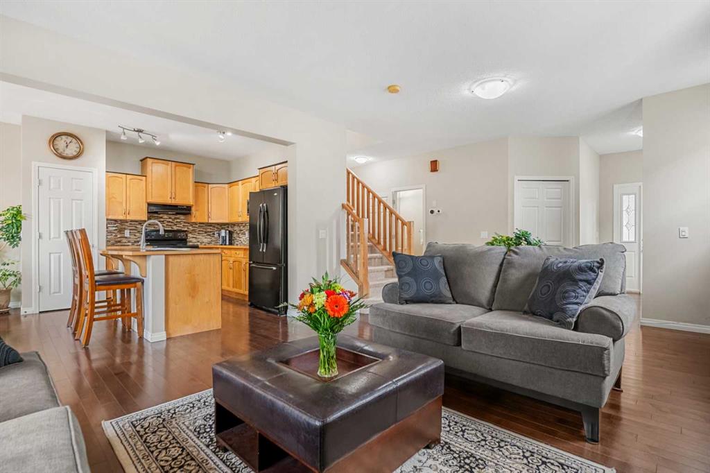 Look no further!! Located in the desirable area of Rockysprings! This beautiful 2 storey home offers 3 bedrooms up and a spacious and cozy bonus room on the upper level with a gas fireplace. The main offers gorgeous hardwood floors, gas fireplace and open concept from kitchen to family room. Off the dining area you can access the large deck with a gas line for your summer BBQs and overlooking the lovely treed back. The lower walkout level is set up perfectly with a illegal suite and its own entry. Additional features include the air conditioning, a year round exterior remote controlled lighting system, so no need to worry about annual hanging of Christmas lights(different colors available), vacuum system with attachments, new water heater and a storage shed out back. The area of Rocky Ridge offers many amazing amenities such as the YMCA , Shopping plaza, schools, parks and easy access out to Country Hills Blvd, Stoney Trail and Trans Canada Highway. Don't miss this opportunity ! Call to view today!