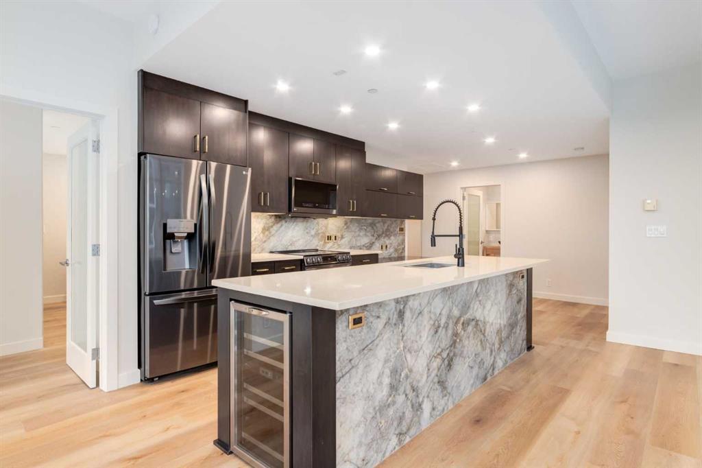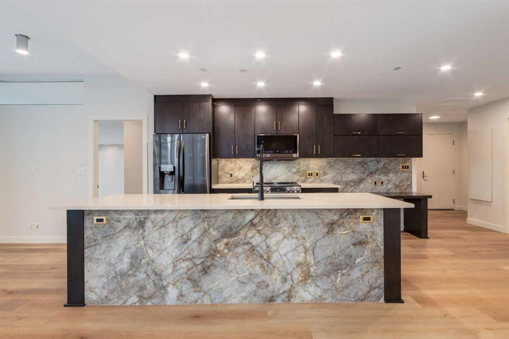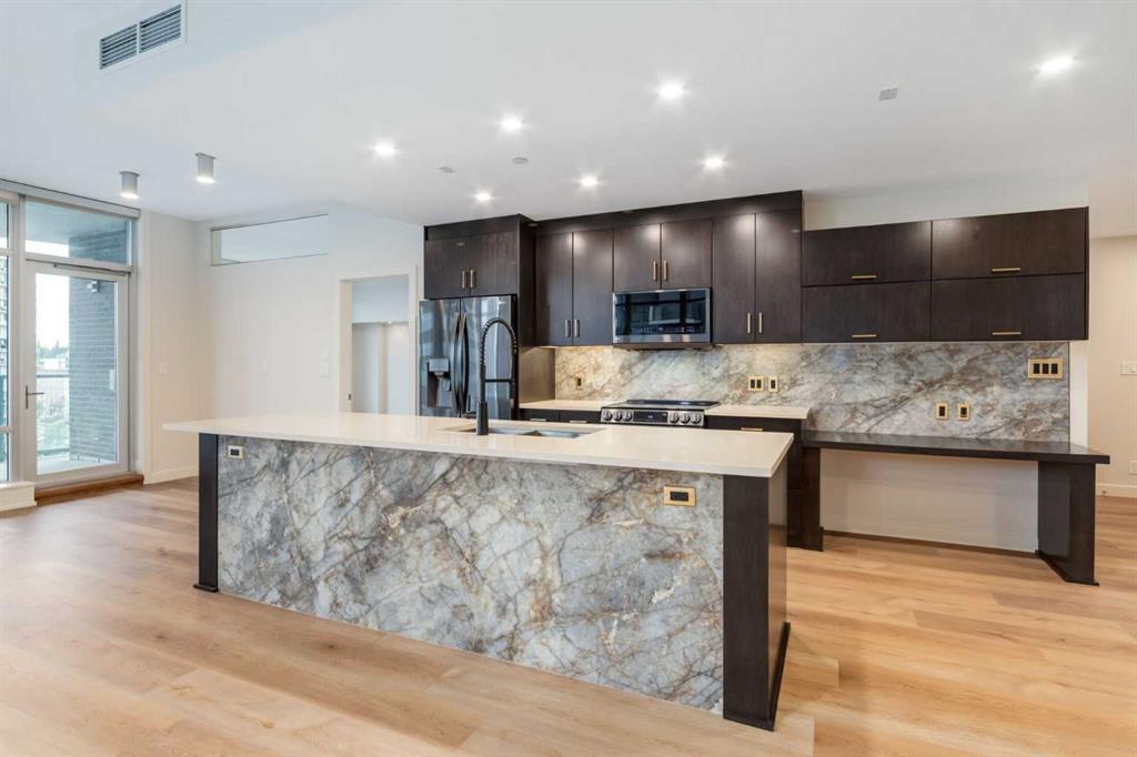 Newly RENOVATED and UPGRADED, 2 Bdrm, 2 bathroom 1172sf home. Everything about this property is oversized, TWO Titled UNDERGROUND PARKING stalls, one of which is oversized and has an attached 4' x 12' ENORMOUS storage locker; a ~300sf SOUTH facing balcony with excellent views of Memorial Park, and the Beltline. 1172SF of thoughtfully renovated living space, with a total of 2 Titled Storage Lockers, Floor to Ceiling windows in every room, with 9' ceilings. The sprawling primary retreat has a large walk in closet, sleek vanity with new dual sinks, new countertops, and new wall mount faucets. Private water closet with an electric TOTO bidet, and an extravagant 2 person shower with the largest RAINSHOWER head we have ever seen. The upgrades do not stop there, the main bathroom has also been completely redone, new Wetstyke Vanity with glass sink, undercabinet and niche lighting for a true spa effect. There is NEW vinyl plank flooring throughout the condo. The open island kitchen has new, and upgraded Black Stainless LG appliances, a striking new backsplash and island front to match, along with a new kitchen faucet, a commercial grade BLANCO undermount sink and so much quartz counter space you won't know what to do with it. Ebony stained maple cabinetry with a built in desk. Full sized Insuite laundry of course in a large utility closet. New light fixtures throughout. Central Air Conditioning, your own humidifier and fan Coil system. The building offers a great gym, guest suite, boardroom, car wash bay and has a separate visitor parking garage for your guests. On site concierge, keeps the building running smoothly. An amazing location situated midway between work and play, and a short walk to all amenities.