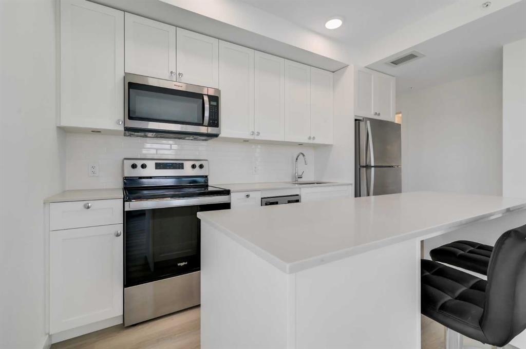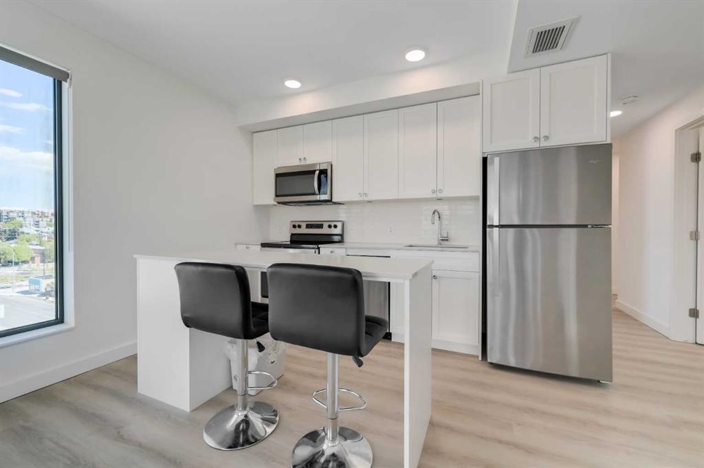 AIRBNB ALLOWED | DOWNTOWN VIEWS | CORNER UNIT | STEPS FROM SHOPPING, PARKS, AND RIVER | TITLED UNDERGROUND PARKING & STORAGE | Perched at the edge of Bridgeland and Crescent Heights, this stunning condo developed by Minto Communities offers the perfect blend of modern living and urban convenience. This corner unit features 2 bedrooms and 1 bathroom, bathed in natural light from its west-facing position. Enjoy breathtaking views of downtown Calgary from your private balcony, perfect for relaxing or entertaining. Step inside to an open floorplan where a bright kitchen awaits, complete with a large island with seating, quartz countertops, stainless steel appliances, and in-suite laundry for convenience. Safety and community are paramount, with a smart security system and resident engagement system integrated into the unit. Enjoy one-way video calling, facial recognition access, package locker integration, community messaging, and virtual concierge services. Take advantage of the building's rooftop patio, offering unobstructed views of the downtown skyline, firepits, and barbecues, creating a perfect space for hosting guests. Additionally, there is an indoor workspace for your professional needs. Location is everything, and this condo is steps away from shops, parks, restaurants, playgrounds, the river pathway system, downtown Calgary, and the Bridgeland LRT station. Whether you're looking for a great rental investment or a vibrant place to call home, this condo is ideal for anyone wanting to be close to countless amenities within walking distance. Don't miss out on this opportunity to live in one of Calgary's most sought-after neighborhoods!