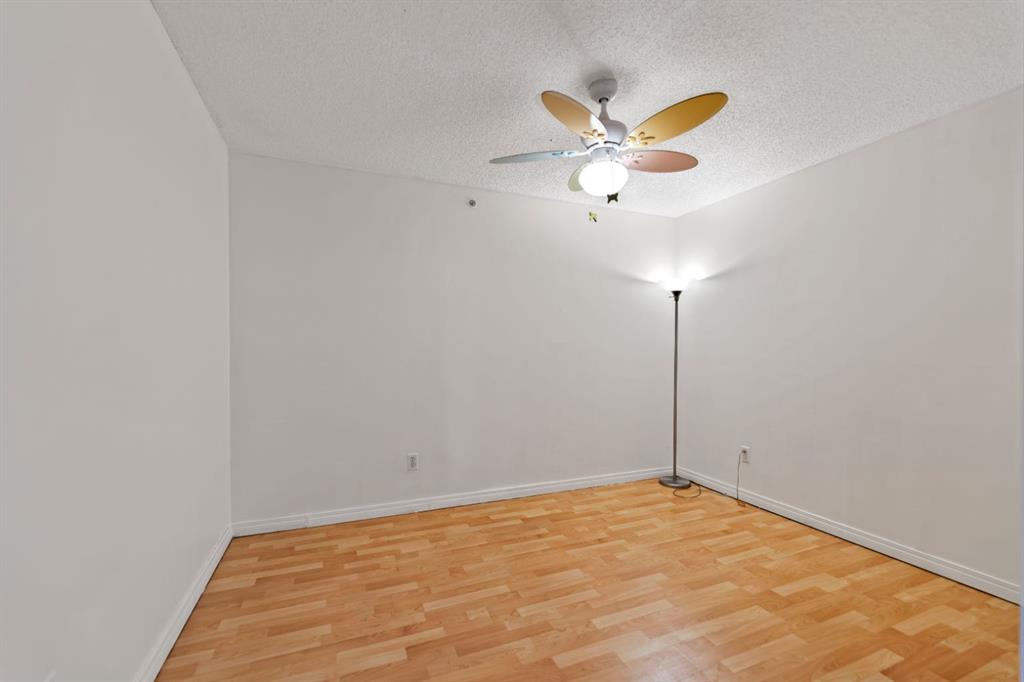 Very nicely kept Condo with Large primary bedroom , huge den that can easily function as 2nd bedroom or a home office. A 4 pc. bathroom features a tub/shower. Laundry space with in-suite stacked washer & Dryer (new). Sliding glass doors off the open concept living/kitchen and eating area into an balcony complete with gas hookup for BBQ. A TITLED secure underground parking stall and storage locker (assigned) . Very secured building with lots of visitor parking stalls. Short drive to downtown, close to schools, parks including Elliston Park & Lake across the street from the complex. Bus stop is conveniently located outside the complex.