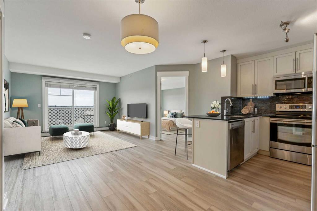 OPEN HOUSE SATURDAY OCTOBER 5, 1-3! Attention first time buyers and investors! This TURN KEY TOP FLOOR SOUTH FACING condo boasting brand new vinyl plank flooring is ready for immediate occupancy! Bright and sunny featuring 2 large bedrooms, the master including 4 piece ensuite, ample living room, space for dining and functional sleek kitchen make this the perfect welcoming space. In suite laundry, large storage area AND separate storage unit provide ample space for all your things, and secured titled underground parking makes all season parking a breeze. Enjoy the serene park view and sun from your top floor balcony, and with heat included in the condo fee AND the inclusion of a free standing a/c unit, year round comfort is a guarantee. This unit represents THE best of condo living in Skyview Ranch, come and see for yourself!