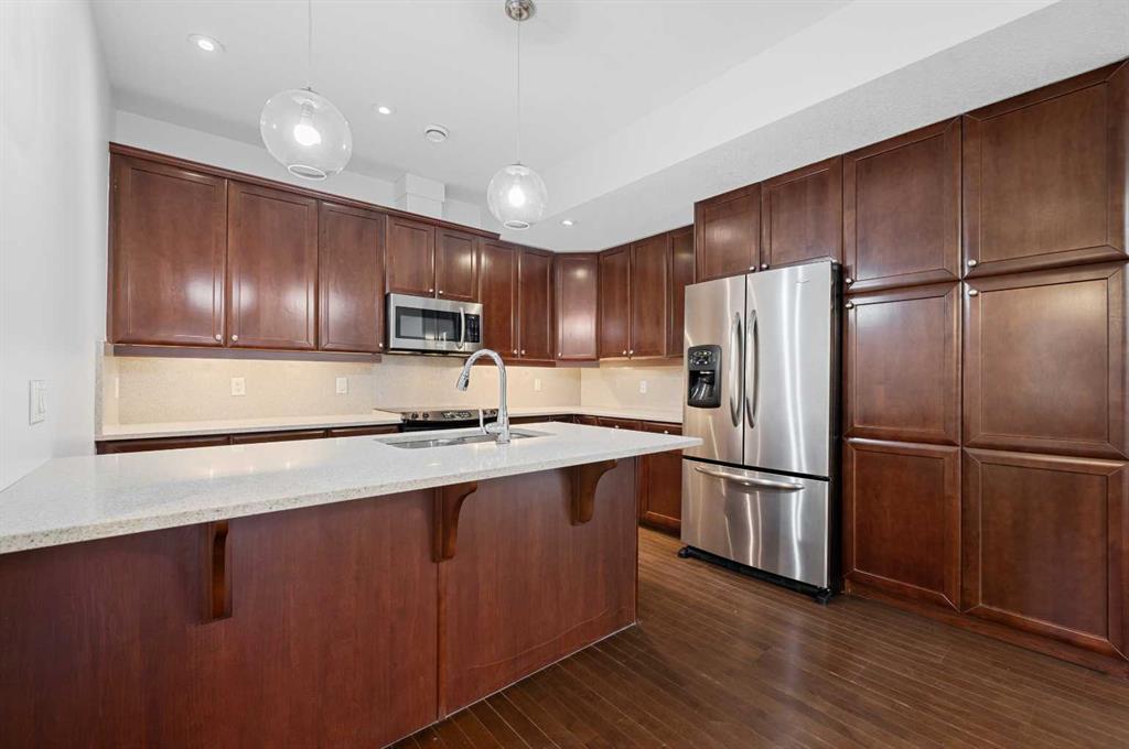 Welcome to this charming townhouse in the sough-after Richmond community, just a block away from the vibrant and bustling Marda Loop! Step inside to discover an inviting main floor with elegant hardwood flooring. The spacious living area is anchored by a gas fireplace, complete with a mantle and built-in shelving, creating a cozy focal point for gatherings. The newly painted walls and natural light enhance the home's warm and welcoming ambiance. The kitchen features granite countertops and an impressive array of cabinetry, providing ample storage. Additionally, in-unit storage rooms offer convenient and practical space for all your needs. From the main floor, step out onto a private deck surrounded by lush trees. Upstairs, you'll find two generously sized bedrooms, each with ITS OWN ENSUITE BATHROOM! The primary bedroom is complete with its own deck shaded by trees offering a tranquil retreat for relaxation. Don't miss the opportunity to call this exquisite property your new home!