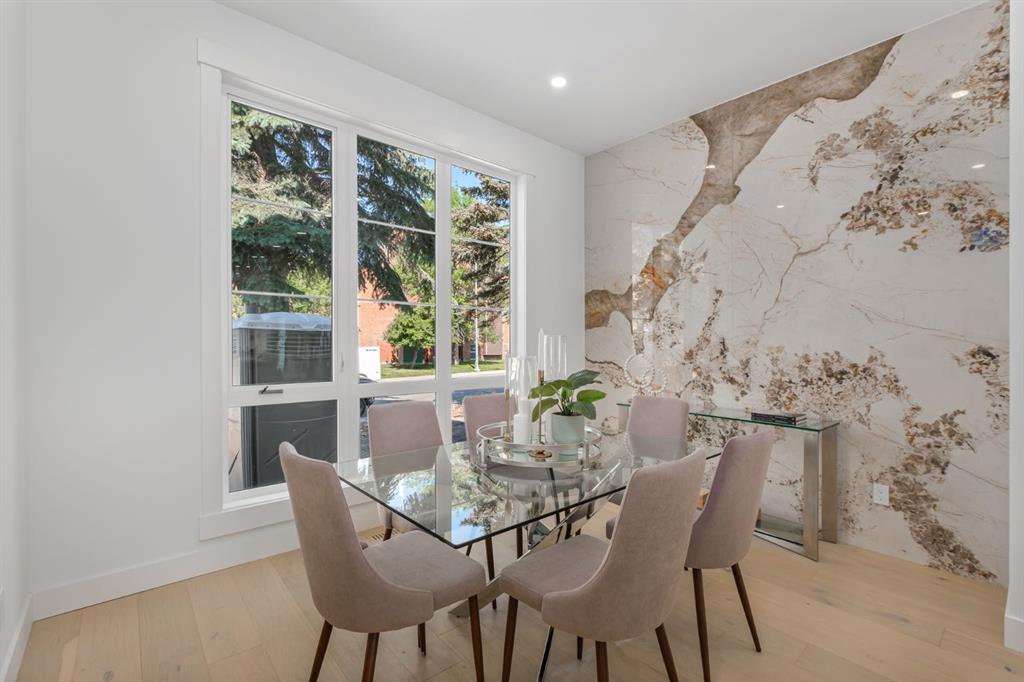 Public Remarks OPEN HOUSE Sunday October 27th 12-4PM! This meticulously crafted Modern Farmhouse is adorned with luxury finishings and exceptional upgrades. Professionally designed and executed by an experienced local builder that prioritizes layouts first, with beautifully accompanying aesthetics to match. Built-ins, high end tile, and engineered hardwood are just a few of the selections that make this home truly stand out. The main floor opens up into a foyer and adjoining dining room with big windows and a stunning large format tile feature wall. Transitioning into the chef's kitchen is a giant island with double sink and ample seating, full stainless steel Kitchenaid appliance package, and two built in pantries. The living room is off to the back and includes a gas fireplace and sliding glass patio door opening up onto the private back deck. The nearby mudroom is filled with tons of storage space and connects to a pathway leading out to the double detached garage. This floor is finished off by a functional powder room with another breathtaking integrated large format porcelain tile feature. Upstairs is the expansive primary bedroom, which includes 14 ft vaulted ceilings and is flooded with natural light by the large west-facing arched window. It also includes a giant walk-in closet and a lavish makeup/vanity station that optimizes additional storage. The attached ensuite comes with a standup shower with a steam unit, double vanity, free standing soaker tub with a standing bath filler system, plus in-floor heating. Two additional huge bedrooms with walk-in closets, a full bathroom, and laundry room with a sink complete this level. Down in the basement is a media room with built-in shelving and wet bar area perfect for entertaining, as well as an enclosed home gym with a full length mirror and shock absorbing flooring. An additional bedroom and full bathroom are also down below. The basement is roughed-in for in-floor hydronic heating, and the mechanical room integrates both a high efficiency furnace and hot water tank. Additional upgrades included are rough-in for AC, upgraded insulation, sound proofing and HVAC vents, rough-in for electrical car charger in the garage, and a NEST smart thermostat. This home is in the beautiful inner city community of Killarney, mere minutes away from green spaces and recreation opportunities, restaurants, shopping, 17th Avenue, and quick drive to the Downtown Core.