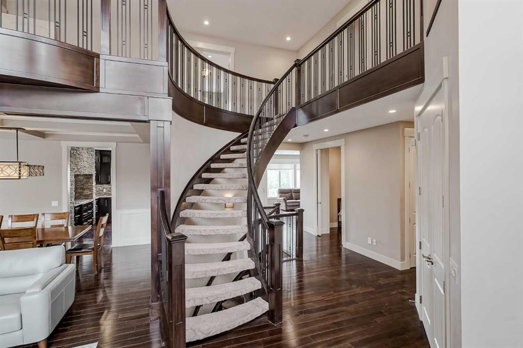 Experience breathtaking views from this stunning home in Panorama Hills, where every window reveals a scene of natural beauty. Perched gracefully on the edge of a peaceful ravine, this residence offers an enchanting backdrop that harmonizes with its surroundings. Inside, you'll find a world of elegance and luxury. With around 5000 square feet of thoughtfully designed space, this centrally air-conditioned home combines modern amenities with expert craftsmanship. High-end finishes are evident throughout, creating a sense of opulence at every turn. The gourmet kitchen is a chef's dream, featuring a gas stove, premium granite counters with under-mount sinks, and top-of-the-line stainless steel appliances. A very hard-to-find spice kitchen that adds functionality to your culinary endeavours and entertaining company. Oversized windows on every level flood the interior with natural light and frame the picturesque views. Upstairs, a well-equipped laundry room with cabinets and a sink adds both convenience and style. The home boasts 9-foot ceilings on both the main floor, including a vaulted area big enough for 16' foot xmas tree! Luxurious hardwood flooring throughout, enhancing its sophisticated atmosphere. The spacious loft overlooks the impressive foyer and formal living room, offering a serene space for relaxation and entertaining. The primary bedroom is a true retreat, complete with a spa-like ensuite for ultimate relaxation and a fireplace. Three additional large bedrooms, including a second primary suite, provide ample space for family and guests. From start to finish, this home represents perfection, with every detail meticulously curated for an exceptional living experience. Check off your "would like to haves" and then add in these hard to find items all in one place. and you have the makings of the perfect " unicorn" property. 7 bedrooms including the main floor bedroom and full bath. Walkout basement with endless opportunities. The very functional spice kitchen is right off the main kitchen. Backing on to the greenspace and paths. and so much more.