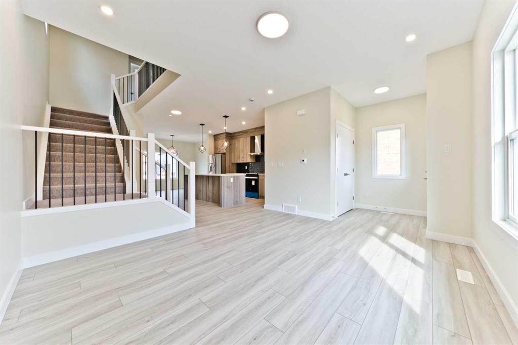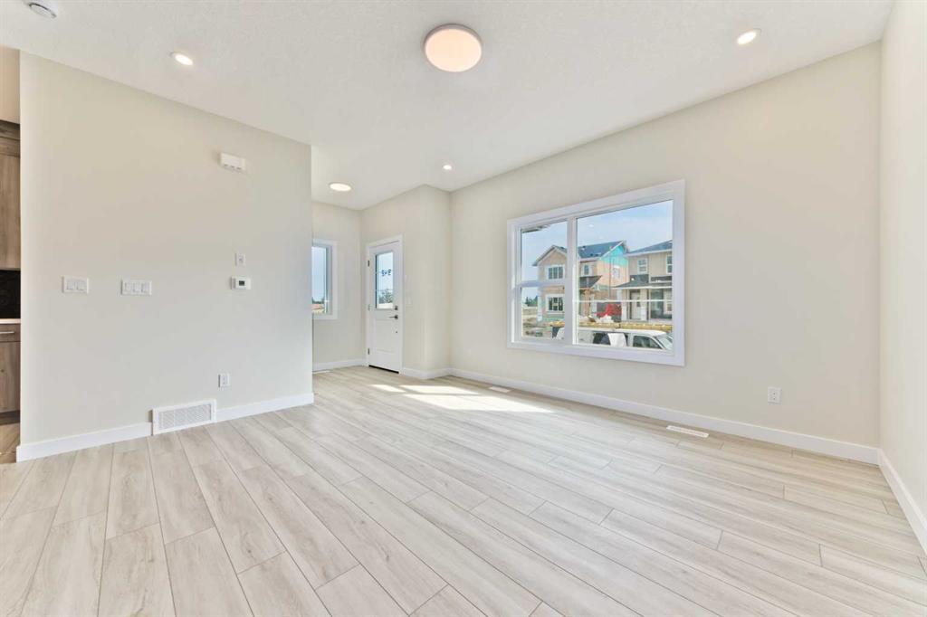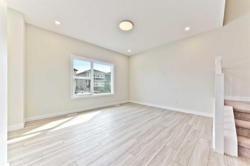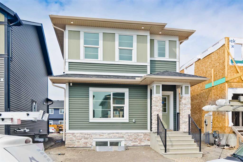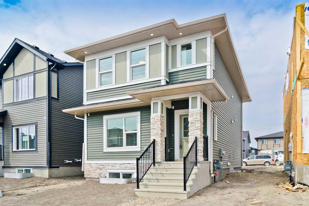 Welcome to this brand new 1622 sq ft home Situated in Midtown of Airdrie with all the warrantees. This home offers a harmonious blend of comfort, functionality, and modern design. Chefs dream Kitchen boasts contemporary cupboards that extend to the ceiling, lights highlighting the Quartz island, chimney hood fan with gas stove and builtin microwave, pantry, STAINLESS appliances all looking out a BIG window into your backyard to watch the kids play. The upper floor features 3 bedrooms, including a spacious master bedroom with a walk-in closet, and a 3 pc ensuite. A practical floorplan & upgraded beautiful finishing touches. This floor also includes a good-sized laundry area with storage space. The other 2 bedrooms are generously sized with big windows. Rarely available in Airdrie, unfinshed BASEMENT with a side entry and three big windows could be ideal for an in-law suite, making this property a fantastic opportunity for investors or first-time home buyers. Enjoy the convenience of the concrete pad at the back, providing ample space for vehicle parking. Steps away from a pond, pedestrian bridge, and nearby shops; Airdrie is conveniently located: Less than 20 minutes from Calgary airport; Less than 10 minutes from the QE II highway; Approximately 15 minutes from north Calgary. Don’t miss the opportunity to make it yours!