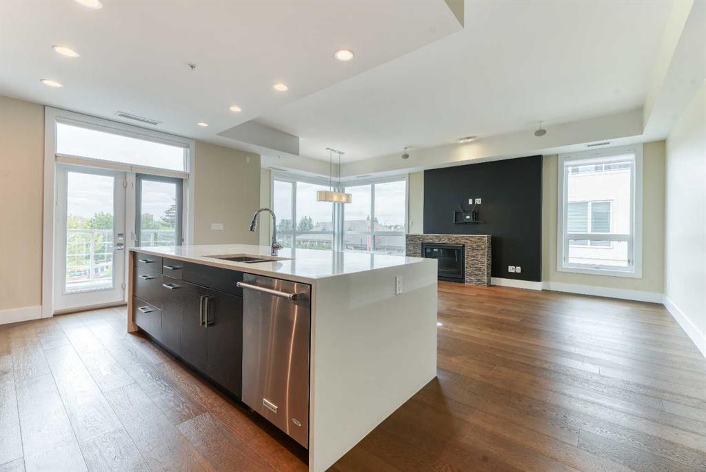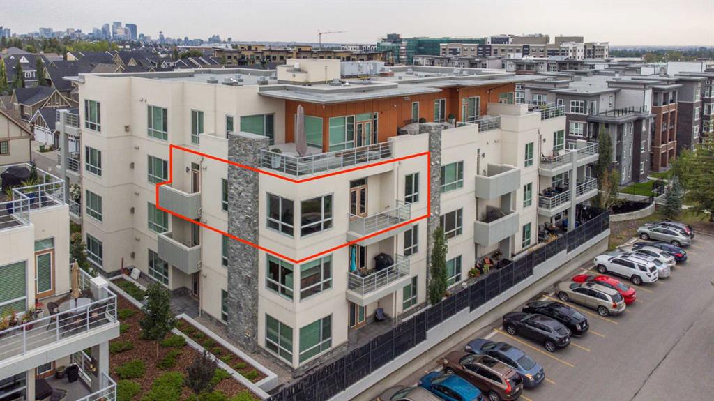 Public Remarks Welcome home! Discover unparalleled luxury in this third floor southwest-facing corner unit in the prestigious "Overture at Currie Barracks" complex. Built by Jayman Modus and designed by Jenkins Architecture, this complex defines upscale city living! This residence has been meticulously maintained by its original owner, and boasts 2 spacious bedrooms, den, and 2 spa-inspired bathrooms, in 1,382 square feet of living space, with extraordinary views from every room! This condominium unit comes with 2 titled underground parking stalls and 1 titled storage locker (in the heated underground parkade)! This bright and open-concept floorplan is enhanced by 10 foot ceilings, 8 foot interior solid-core doors, and exquisite features such as central air conditioning, dual pane low-E windows with Argon for energy efficiency, five-inch planked engineered solid hardwood and tile flooring, quartz waterfall countertops, top-of-the-line stainless steel KitchenAid appliance package (built-in gas stovetop, built-in convection oven, fridge with water/ice), extensive soft-close cabinetry, natural gas fireplace, high-end window treatments on the floor-to-ceiling windows, and large in-suite laundry room with a sink, storage and counter space. The large and luxurious primary bedroom showcases a private west-facing balcony, an ensuite with 10mm glass walk-in shower, deep soaker tub, and dual vanities, and a sprawling walk-in closet. The second bedroom is sizeable and has a walkthrough closet to a cheater-ensuite. The den is complete with a built-in desk and storage. Enjoy breathtaking, unobstructed mountain and city views from 2 private balconies - one facing south off of the kitchen (with natural gas BBQ hookup) and the other facing west off of the primary bedroom. This elite building is secure, well-managed, and pet-friendly! Near to all local amenities! Don’t miss out on your opportunity to own in this coveted complex! Call now!