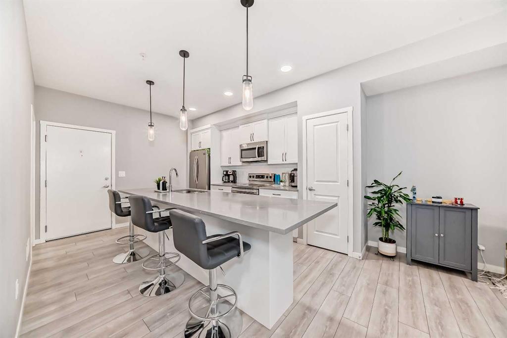 Welcome to this stylish and modern 1-bedroom, 1-bathroom condo in the heart of the highly desirable community of Harvest Hills, one of North Calgary’s top spots! Perfect for investors or first-time buyers, this bright third-floor unit features an open-concept layout, complete with a spacious kitchen, huge quartz island, stainless steel appliances, and a generous in-suite laundry room. With unbeatable value, this property is just steps from every convenience: T&T Supermarket, Sobeys, Superstore, Shoppers Drug Mart, Landmark Cinema, Vivo Sports Centre, and more. Whether you’re grabbing a coffee at Tim Hortons or Starbucks, dining out at local restaurants, or enjoying the nearby library, you’ve got it all right at your doorstep. This gem won’t last long—book your viewing today!