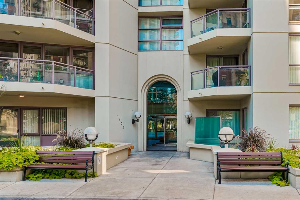 An exquisite south-facing home in The Marquis is located just steps from the Bow River Pathway. This 1 bed home comes fully furnished and extremely spacious with over 800sq' of living space! The main living areas flow perfectly & allow for easy entertaining. The kitchen features granite countertops, plenty of storage & counter space & raised eating bar. There is a dedicated dining area & the living room has a gas fireplace & patio doors that open up to your south-facing patio. New kitchen appliances, and motorized blinds. Bathroom is complete with in-floor heating and walk-in laundry /storage room. There is plenty of room for a BBQ & seating area where you can enjoy with views to the southwest part of Calgary. The master suite is very spacious & has a cheater ensuite, as well as a private laundry & storage room area. The Marquis is a well-managed building with elevator, meeting, recreation & fitness rooms. A titled underground parking stall in the heated and secure underground parkade is included with the unit. An additional storage separate from the unit. Condo fees include heat and water. Enjoy a truly serene outdoor space/courtyard just behind the building. Unison at Kerby Centre is a facility across the street with lots of daily/weekly and seasonal activities! This unit is in an ideal location with the ideal price!