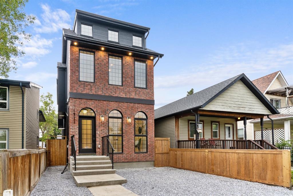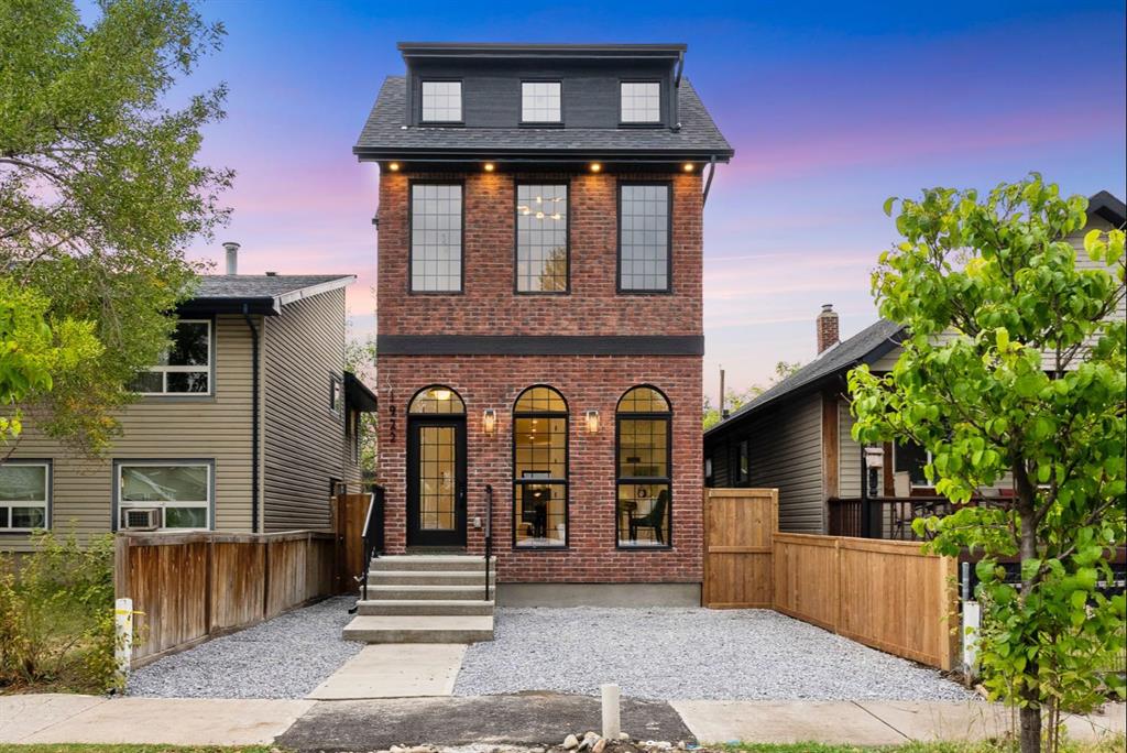 **$50,000 Major Price Correction** This is an incredible opportunity to own a brand-new, NYC-inspired brownstone, wrapped in striking red brick, with over 3,153 total square feet of thoughtfully designed living space, built by Jerry Homes. As you enter, you're welcomed by a spacious foyer featuring a built-in bench and soaring 10-foot ceilings and hardwood floors throughout the main level. The adjacent main floor home office boasts custom built-ins and is filled with natural light from large arched windows. The stunning kitchen is equipped with a 12-foot waterfall island, Fisher & Paykel premium appliances, and elegant finishes like gold and black handles, white cabinetry, under-cabinet lighting, and quartz countertops. The great room is anchored by a custom multi-tiered gas fireplace, while the living room showcases detailed wainscoting. The mudroom impresses with its designer tile flooring, ample built-ins, and charming arched doorway. Upstairs, you'll find hardwood floors, 9-foot ceilings and an expansive primary suite with tray ceilings, a luxurious 5-piece ensuite featuring custom tiles, a skylight, double vanity, in-floor heating, a steam shower rough-in, and two spacious walk-in closets. A generously sized front bedroom with soaring ceilings, a 3-piece bathroom, another bedroom, and a large laundry room complete the upper level. The fully finished basement includes rough-in for in-floor heating, a vast recreation room, wet bar, 4th bedroom, 3-piece bath, and a dedicated storage room. The home has beautiful architectural details like curved ceilings, arched doors and windows, and black interior windows. Additional highlights include low-maintenance landscaping, rough-ins for A/C, built-in speakers, alarm system, and exterior cameras. Conveniently located near schools, parks, trendy restaurants, bars, the river, and the Calgary Zoo, this home offers peaceful living just minutes from Inglewood's vibrant scene.