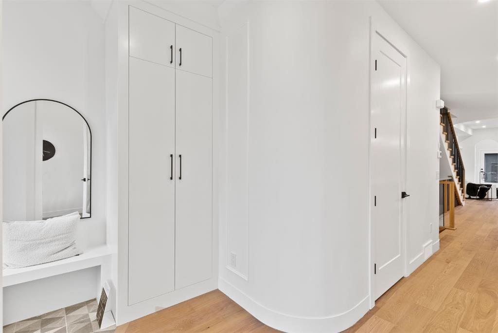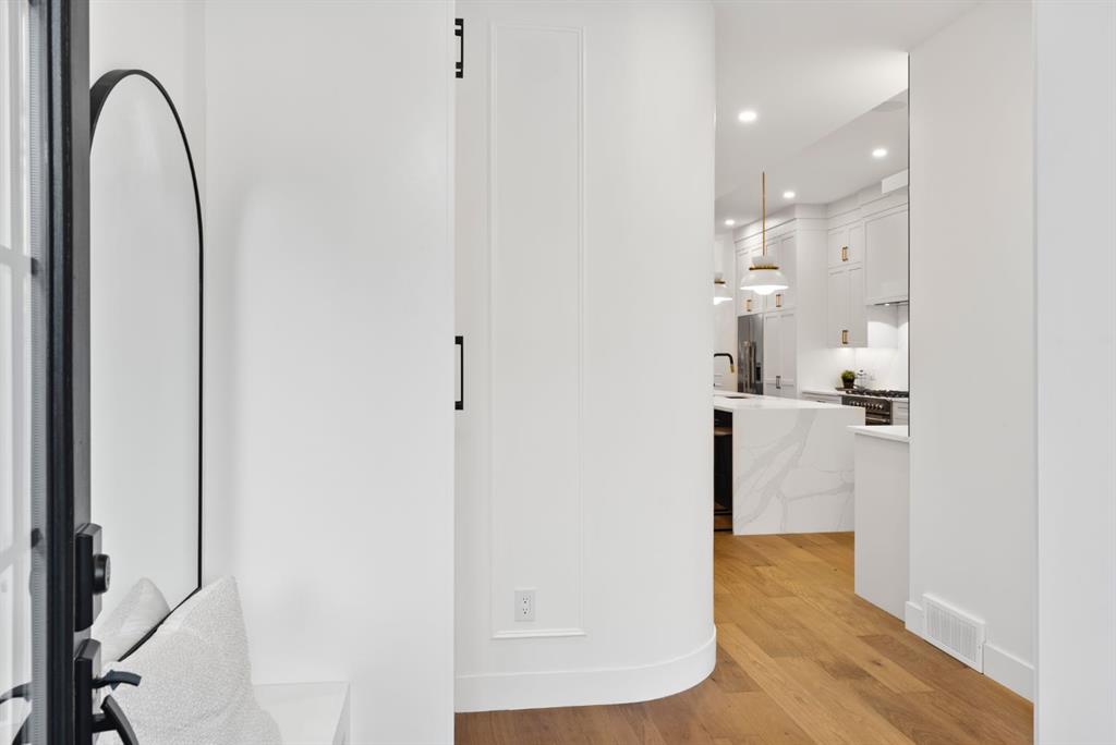 Public Remarks **$50,000 Major Price Correction** This is an incredible opportunity to own a brand-new, NYC-inspired brownstone, wrapped in striking red brick, with over 3,153 total square feet of thoughtfully designed living space, built by Jerry Homes. As you enter, you're welcomed by a spacious foyer featuring a built-in bench and soaring 10-foot ceilings and hardwood floors throughout the main level. The adjacent main floor home office boasts custom built-ins and is filled with natural light from large arched windows. The stunning kitchen is equipped with a 12-foot waterfall island, Fisher & Paykel premium appliances, and elegant finishes like gold and black handles, white cabinetry, under-cabinet lighting, and quartz countertops. The great room is anchored by a custom multi-tiered gas fireplace, while the living room showcases detailed wainscoting. The mudroom impresses with its designer tile flooring, ample built-ins, and charming arched doorway. Upstairs, you'll find hardwood floors, 9-foot ceilings and an expansive primary suite with tray ceilings, a luxurious 5-piece ensuite featuring custom tiles, a skylight, double vanity, in-floor heating, a steam shower rough-in, and two spacious walk-in closets. A generously sized front bedroom with soaring ceilings, a 3-piece bathroom, another bedroom, and a large laundry room complete the upper level. The fully finished basement includes rough-in for in-floor heating, a vast recreation room, wet bar, 4th bedroom, 3-piece bath, and a dedicated storage room. The home has beautiful architectural details like curved ceilings, arched doors and windows, and black interior windows. Additional highlights include low-maintenance landscaping, rough-ins for A/C, built-in speakers, alarm system, and exterior cameras. Conveniently located near schools, parks, trendy restaurants, bars, the river, and the Calgary Zoo, this home offers peaceful living just minutes from Inglewood's vibrant scene.