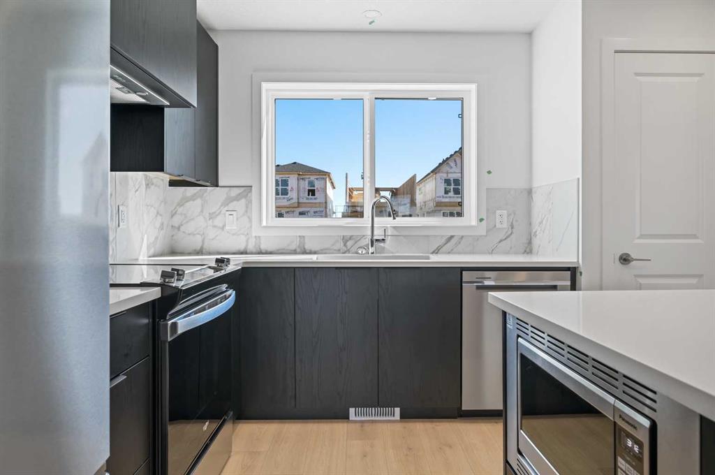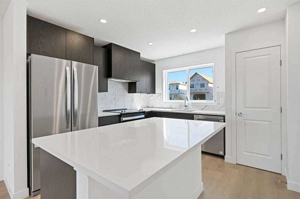 *PREMIER TOWN HOME COLLECTION*BEAUTIFUL JAYMAN BUILT NEW HOME*SOLAR & SMART TECH*NO CONDO FEES*PARKING FOR 2 CARS* This lovely 2 story townhouse features a nice open floor plan that flows smoothly into the modern kitchen with a centralized flush eating bar, Elegant White QUARTZ counters, full pantry, Stainless Steel WHIRLPOOL appliances that includes a 25 cu ft French Door Refrigerator with icemaker, Broan Power Pack hood fan with shroud, built-in Panasonic microwave with trim kit and upgraded slide in glass top stove. As well as a convenient half bath + nice back entry! The 2nd level offers a Primary Suite with a private 3 piece en suite & walk-in closet along with 2 additional spacious bedrooms & a full 4 piece main bath. Bonus: Upper Laundry room! The unfinished basement provides roughed in plumbing & an opportunity for you to create & finish your ideal additional living space. Beautiful interior selections that include a silgranite sink & soft close drawers. Other upgrades include 4x4 rear landing with concrete patio, Fully fenced and landscaped, QUARTZ counters tops in kitchen and bathrooms, Sliding Glass Door Shower in Primary Ensuite, Triple Pane Windows, 10 solar panels, BuiltGreen Canada Standard with an EnerGuide rating, UV-C ultraviolet light air purification system, high efficiency furnace with Merv 13 filters & HRV unit, Navien-Brand tankless hot water heater and Smart Home Technology Solutions. Enjoy living in this beautiful new community with nature as your back drop and trails within steps of your brand new Jayman BUILT Home. South Health Campus, Cineplex and shopping all close by. Welcome Home!
