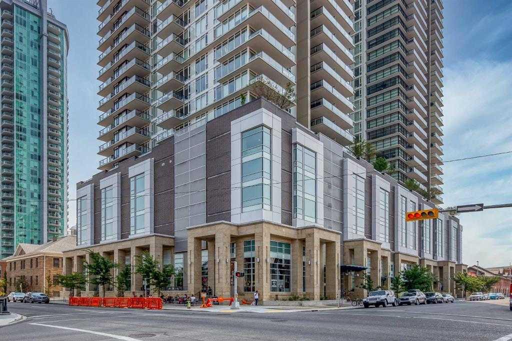 Welcome to this exquisite 11th-floor unit, where you’ll be captivated by breathtaking, unobstructed West-facing views of the Downtown skyline. This stylish 1-Bedroom, 1-Bathroom residence features an Open and functional floor plan, perfectly suited for modern living. The gourmet Kitchen is a Chef’s dream, showcasing a built-in Island, Quartz countertops, and Top-of-the-line appliances from Blomberg and Faber. Italian-designed cabinetry by Armony Cucine provides generous storage, seamlessly blending beauty with practicality. Natural light pours into the spacious Living room through Floor-to-Ceiling windows, complemented by a patio door that opens to an Oversized covered Balcony — ideal for entertaining or enjoying your morning coffee and evening cocktails. A thoughtfully designed custom Desk nook offers an inspiring workspace with ample shelving, perfect for remote professionals. The primary Bedroom comfortably accommodates a queen-sized bed and features a walk-thru Closet that leads to a full-sized Bathroom, adorned with luxurious Quartz countertops and elegant finishes. Additional perks include In-suite Laundry, Central Air conditioning, a Titled underground Parking Stall, and a separate assigned Storage Locker. Indulge in exceptional amenities, including a State-of-the-Art Fitness Center, a Residents’ Lounge with access to a stunning Rooftop Garden Terrace, a workshop, and premium Concierge services. Ideally located within walking distance of the Saddledome, Stampede Grounds, BMO Centre, C-Train, Sunterra, East Village, and picturesque river pathways, this residence offers the perfect blend of relaxation and vibrant community living. Don’t miss the opportunity to make this beautiful home your own!
