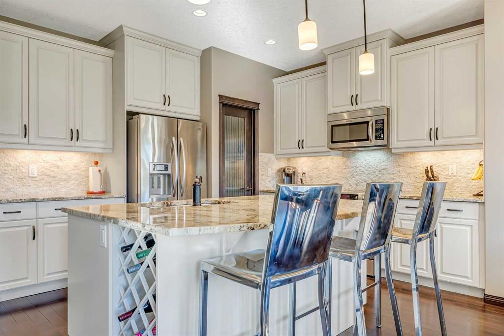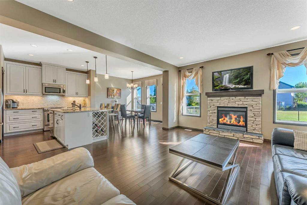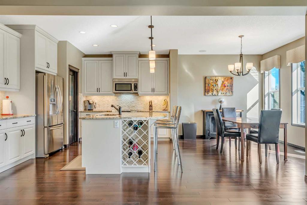 FORMER SHOWHOME | BACKS ONTO A GREEN SPACE | 2 DOORS DOWN FROM A PLAYGROUND | FULLY UPGRADED | CENTRAL AIR CONDITIONING | 9’ MAIN FLOOR CEILINGS | HARDWOOD FLOORS | GRANITE COUNTERTOPS | HIGH-EFFICIENCY FURNACE | 50-GALLON HOT WATER TANK | MAIN FLOOR DEN | CHEF’S DREAM KITCHEN | GAS FIREPLACE | OPEN RISER STAIRS | VAULTED BONUS ROOM | PRIMARY OASIS WITH A 5-PIECE ENSUITE | VAULTED 2ND AND 3RD BEDROOMS WITH BUILT-INS | LARGE YARD | INCREDIBLE LOCATION! Backing onto a green space, just 2 doors down from a playground sits this immaculate, fully upgraded and exceeding stylish former showhome! Outdoor enthusiasts will love the many nearby trails with easy hikes for the whole family ranging from 15 minutes to over an hour or practice your swing at the Valley Ridge Golf Club then come home to a quiet sanctuary. Great curb appeal with a craftsman-style elevation and a double attached garage with a carriage-style door. Inside is loaded with upgrades including central air conditioning, 9’ ceilings, gleaming hardwood floors, granite countertops, a high-efficiency furnace, an oversized 50-gallon hot water tank and much more! French doors lead to the main floor den, perfect for working from home or a tucked away playroom. The open concept great room offers clear sightlines and a contemporary design that is both beautiful and welcoming. Relaxation awaits in front of the living room fireplace flanked by windows expertly framing backyard views. Entertain with ease in the gorgeous kitchen featuring a breakfast bar centre island, stainless steel appliances, a plethora of crisp white cabinets and a walk-in pantry for extra storage. The adjacent dining area is bathed in sunshine and leads to the back deck encouraging a seamless indoor/outdoor lifestyle. Ascend the open riser staircase to the vaulted bonus room and gather over an engaging movie or games night. At the end of the day retreat to the primary bedroom with a lavish ensuite boasting dual vanities, a deep soaker tub, an oversized shower and a large walk-in closet. Both additional bedrooms are spacious and bright with grand vaulted ceilings and built-in maple benches under the windows for a quaint reading area. Laundry is also conveniently on this level, no need to haul loads up and down the stairs. The basement awaits your dream development and is already equipped with open riser stairs and rough-ins for a future bathroom. Host summer barbeques on the rear deck or simply unwind while the kids play in the huge yard that carries onto the green space and beyond to the playground. They will love all the additional play space! Built-in sprinkles keep your yard looking its best with less work for you! This wonderful community is within 15 – 20 minutes to the city centre and 45 minutes to Canmore. Hospitals are 10 minutes away and both Winsport and the newly opened Farmer’s Market are mere minutes away. Truly a phenomenal location for this stylish, move-in ready home!